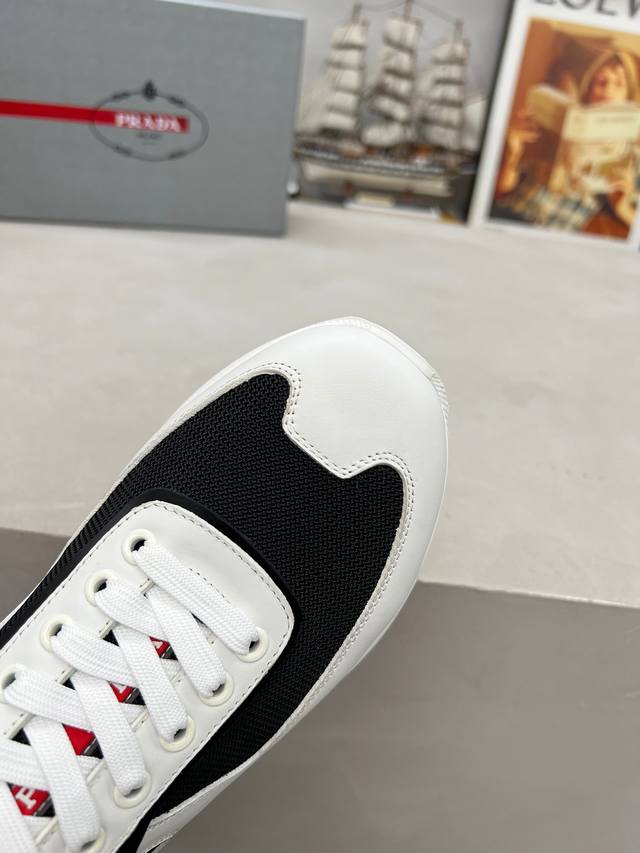 普拉达Prada顶级版运动鞋 鞋面:进口飞织面料拼接软橡胶, 羊皮内里+牛皮踮脚, 耐磨防滑轻便大底, 男女同款:...