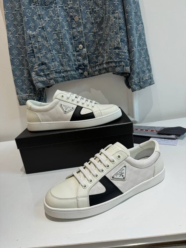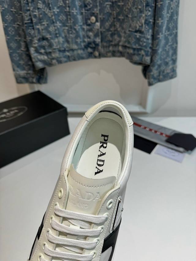 普拉达Prada顶级版运动鞋 鞋面进口飞织面料拼接漆皮, 羊皮内里+牛皮踮脚, 耐磨防滑轻便大底, 男女同款: 码数:35-47码,...