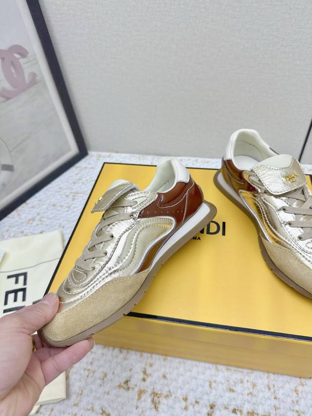 出厂女 男 高版本 Fendi新品速递--德训女鞋10月新品女士德训鞋到货,是精致氛围感的神 奶杏色压纹盒子包,金扣+流苏细节显贵又俏皮 还有这双德训鞋,马毛鞋舌+复古鞋型,时髦感拉满套搭下来,精致慵懒的氛围感直接焊在身上了是行走的时尚画报没错了~#Fendi #德训鞋 绒面搭配麂皮的质感不对称的鞋面通过流畅的线条和缝线设计让人想起水中的涟漪是对Fendi流畅和轻盈传统的颂歌 鞋底的灵感源自“Astuccio”皮草的镶嵌图案,这一独特的特点使其有别于我们的任何其他运动鞋 新品们 真好看看的人心暖暖的 码数