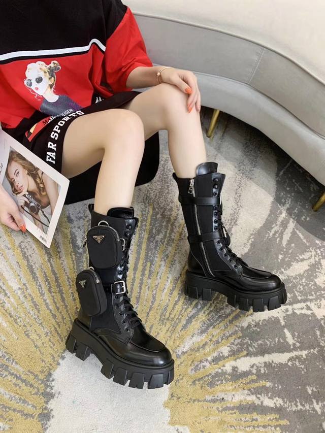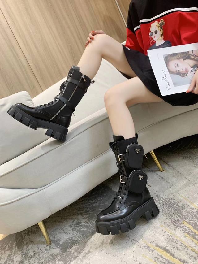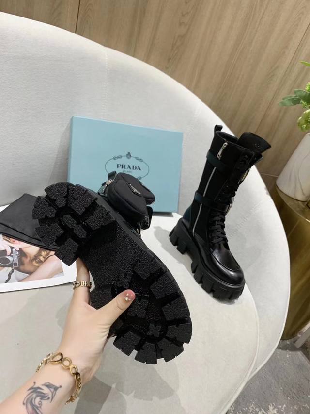 出厂 有无标口袋 最新最火爆普拉达 Prada 市面上最高版本原版1:1复制 鞋面:进口头层亚光开边朱+防水尼龙布面,高光头层牛漆皮+丝绸头层羊皮里+鞋面全部油边工艺 可以对比原版 大底:Tpu+抽真空 专业做包包工厂P生产,包包五金全部一比一开模,全部有Logo,真正做到一比一 码数:女34-40
