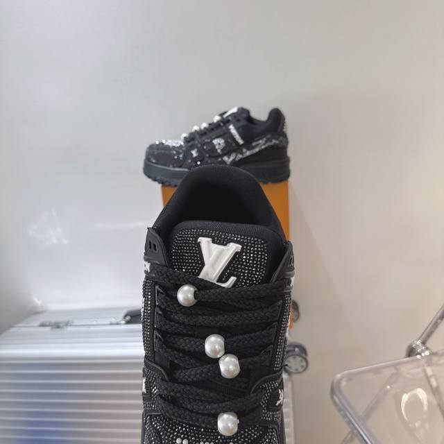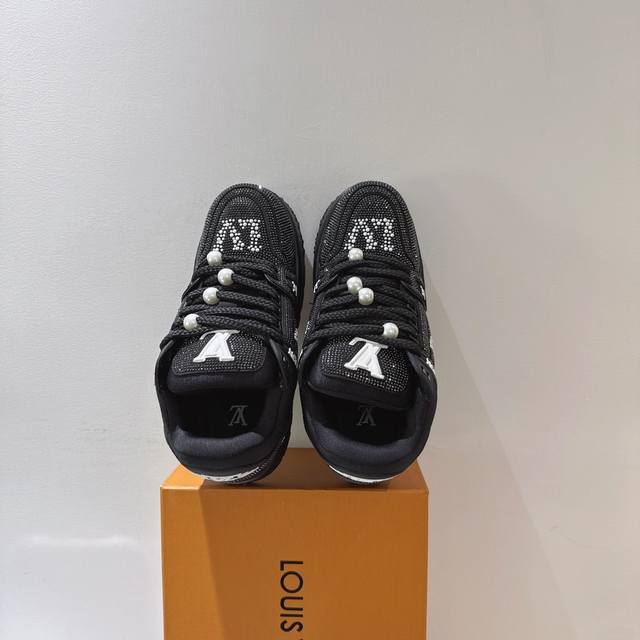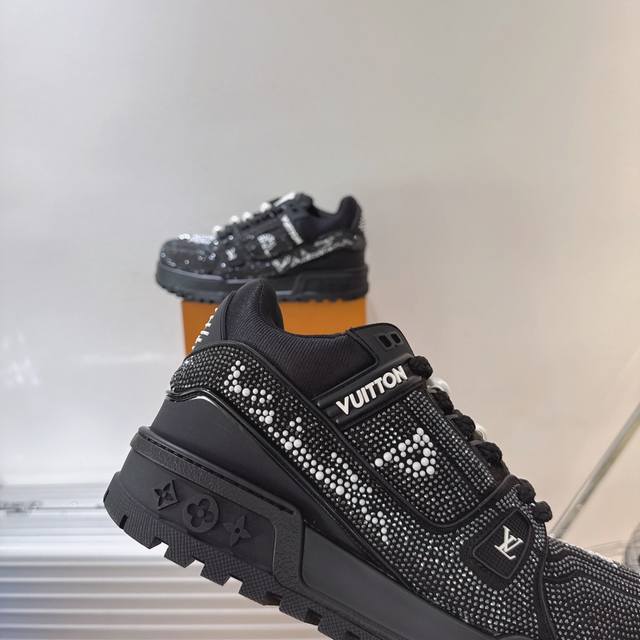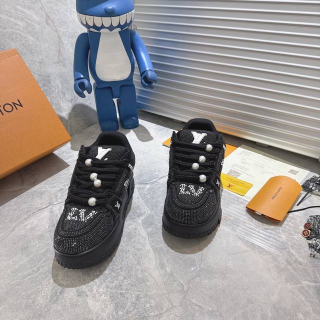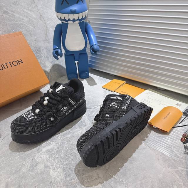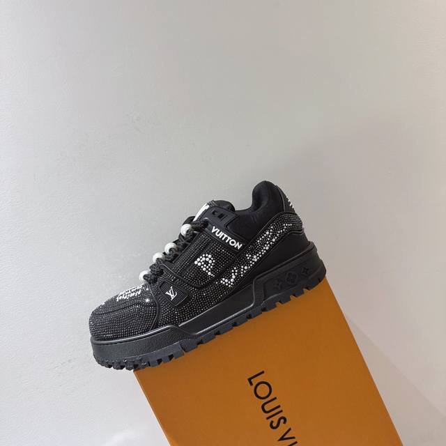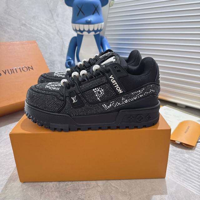 出厂 满钻 Lv Trainer Maxi 小胖丁列系面包鞋 驴牌23S时尚秀走款 原版完楦美型 多次调试 鞋面独家订细制柔小牛皮 厚织实物鞋带 独家私模超轻Tpu大底 原配扣子串珠 正原确装黄色鞋盒 正确底中印花 鞋面印花3D高频度深立体 全电鞋脑针车 紧密相连 针距度密一致 皮面裁剪部位 统油一边封口工艺 备受瞩目热火面包鞋次再拉满流量 各地红网上脚 立体饱满的彩面色包鞋身 超大版型重诠新释了 Virgil Abloh大热Lv运时动装鞋 完增美高5Cm Size:35 36 37 38 39 40 4