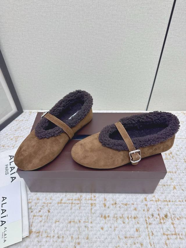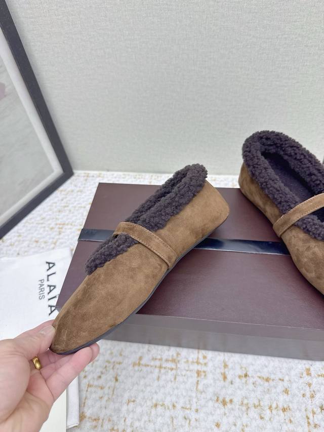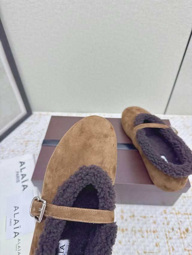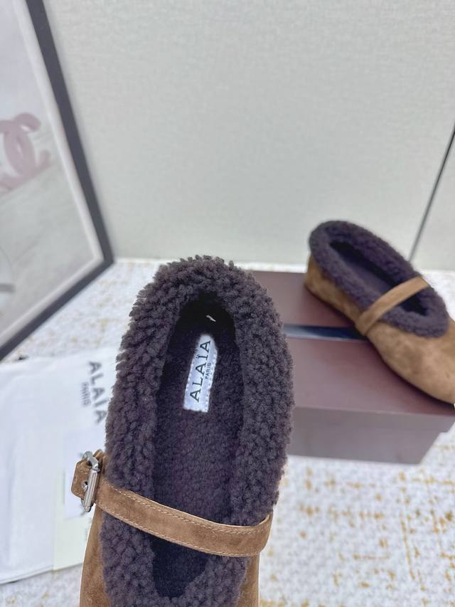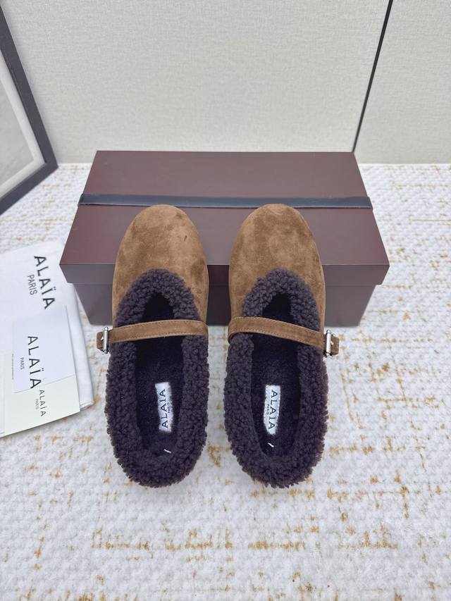 出厂 高版本 Alaia|阿莱亚25Ss秋冬新品平底玛丽珍毛毛鞋颗粒羊羔毛保暖包子鞋! 原版1:1进口颗粒羊羔毛 小众潮牌秋冬季不可错过的时尚单品 鞋面采用优质