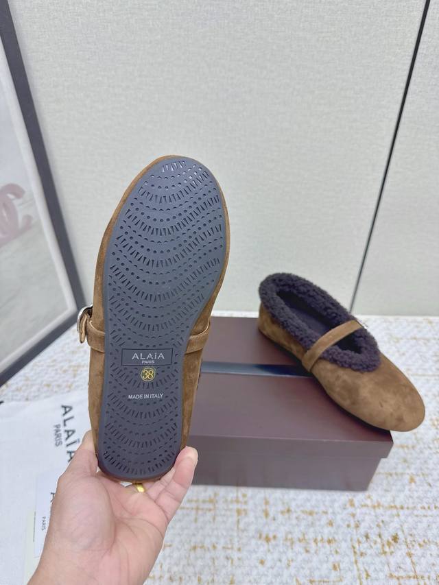 出厂 高版本 Alaia|阿莱亚25Ss秋冬新品平底玛丽珍毛毛鞋颗粒羊羔毛保暖包子鞋! 原版1:1进口颗粒羊羔毛 小众潮牌秋冬季不可错过的时尚单品 鞋面采用优质的皮毛材质 触感柔软细腻 每一步都像是踩在温暖的毛毯上 让你在寒冷的冬日也能感受到融融暖意。 毛毛的质感不仅保暖更是增添了一份毛茸茸的可爱 让人忍不住多看几眼。 经典的玛丽珍鞋型 自带复古韵味。 圆润的鞋头 俏皮又减龄 完美修饰脚型 让双脚看起来小巧精致。 无论是搭配甜美系的连衣裙 还是干练的裤装 它都能轻松驾驭 成为整体造型的点睛之笔,秋冬保暖又