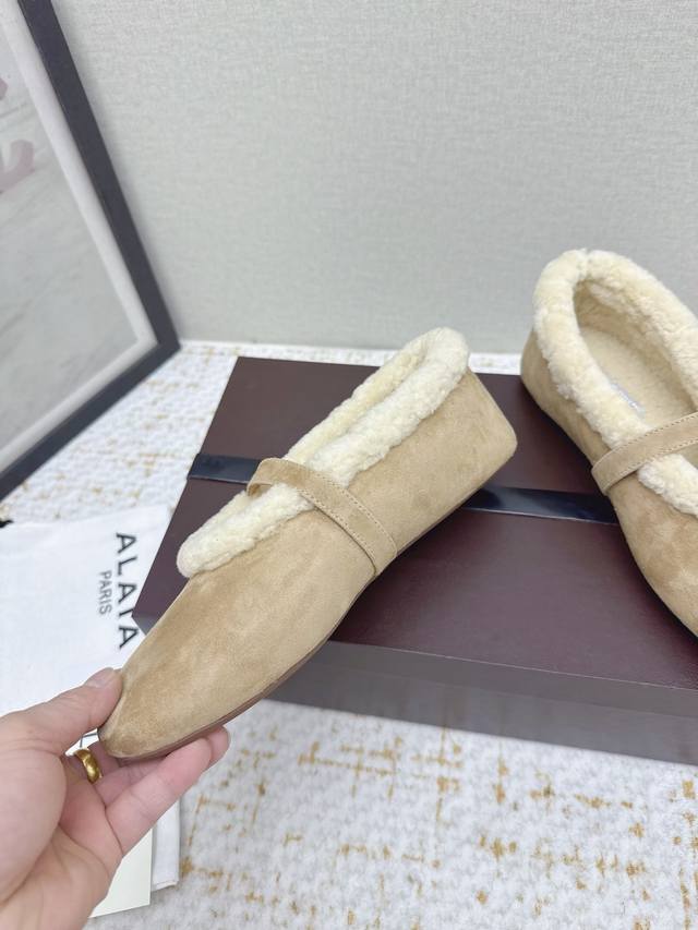 出厂 高版本 Alaia|阿莱亚25Ss秋冬新品平底玛丽珍毛毛鞋颗粒羊羔毛保暖包子鞋! 原版1:1进口颗粒羊羔毛 小众潮牌秋冬季不可错过的时尚单品 鞋面采用优质的皮毛材质 触感柔软细腻 每一步都像是踩在温暖的毛毯上 让你在寒冷的冬日也能感受到融融暖意。 毛毛的质感不仅保暖更是增添了一份毛茸茸的可爱 让人忍不住多看几眼。 经典的玛丽珍鞋型 自带复古韵味。 圆润的鞋头 俏皮又减龄 完美修饰脚型 让双脚看起来小巧精致。 无论是搭配甜美系的连衣裙 还是干练的裤装 它都能轻松驾驭 成为整体造型的点睛之笔,秋冬保暖又