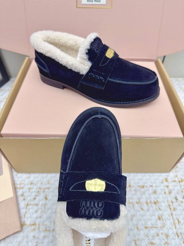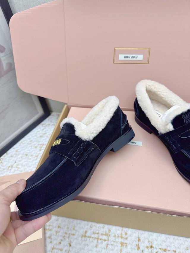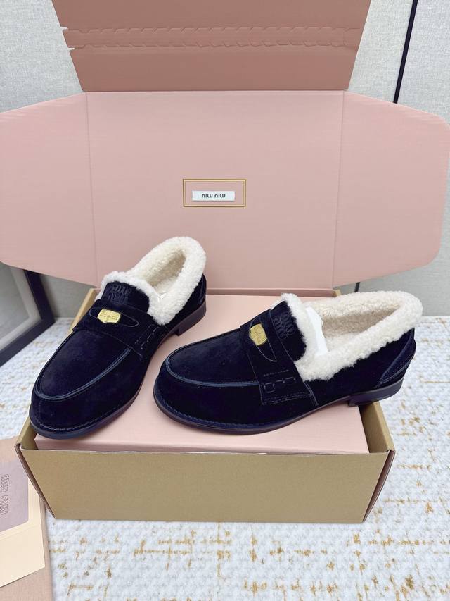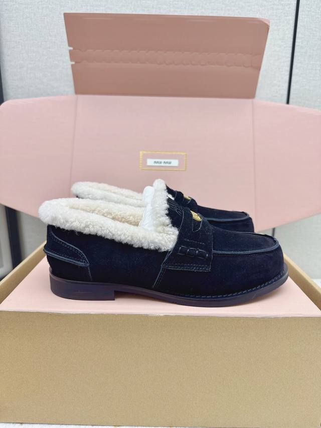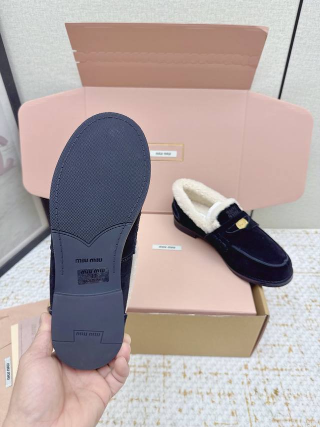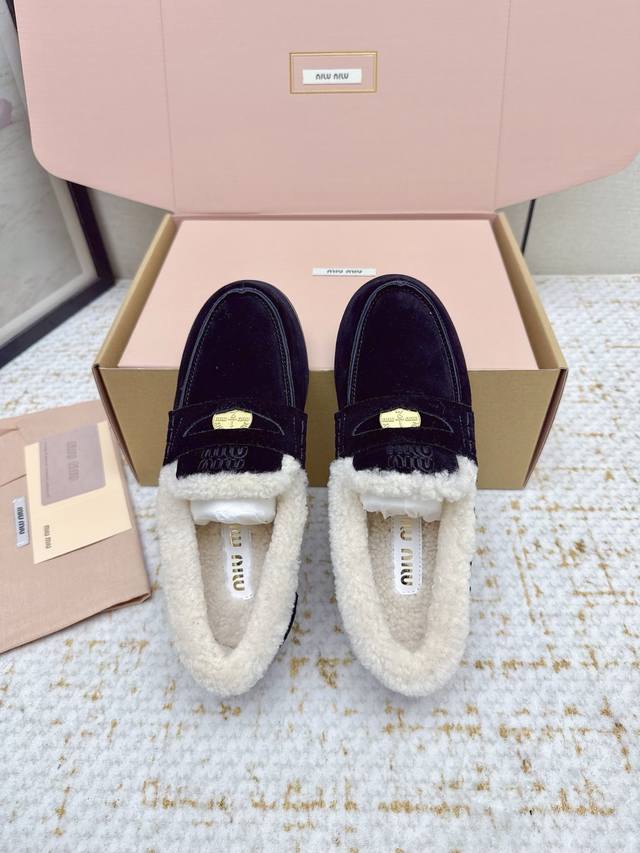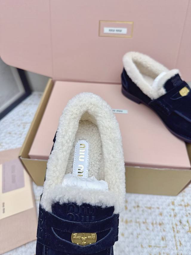 / 出厂 高版本 Miu Miu缪缪秋冬最新款钱币乐福鞋 毛毛鞋 超多明星时尚博主种草 毛茸茸的看着就暖和 新出的小钱币 真的让人一整个心都融化 除了中间夹着一颗钱