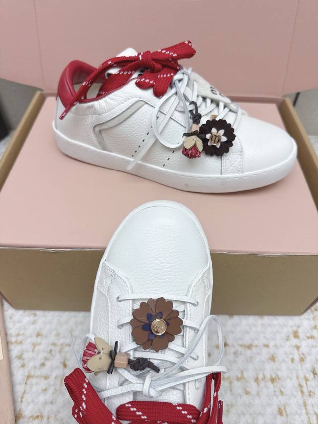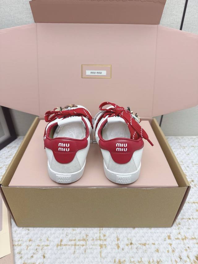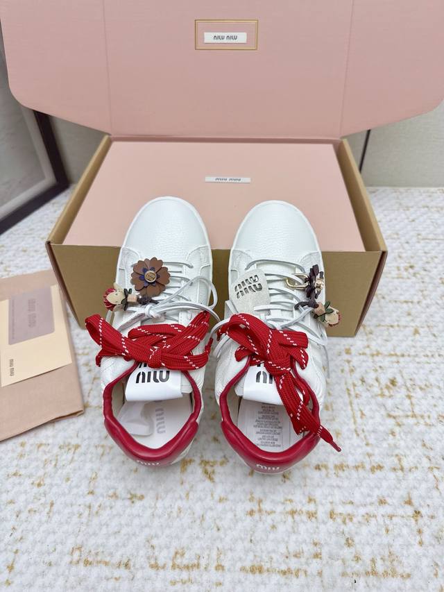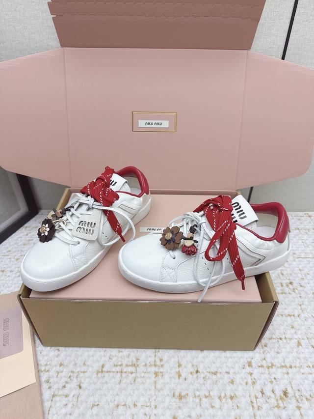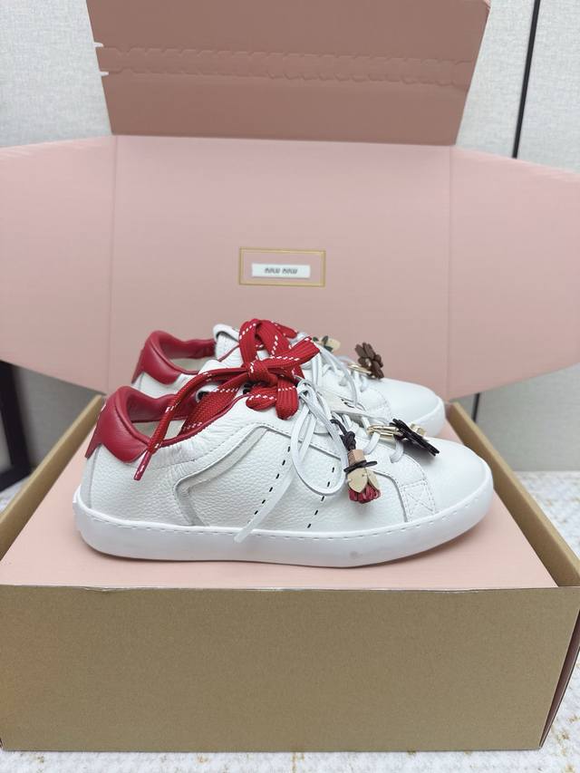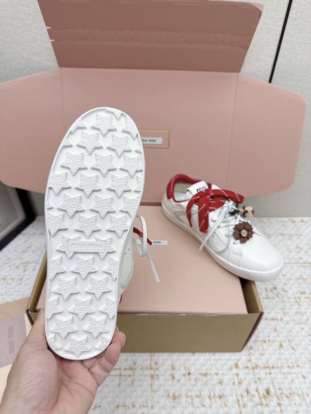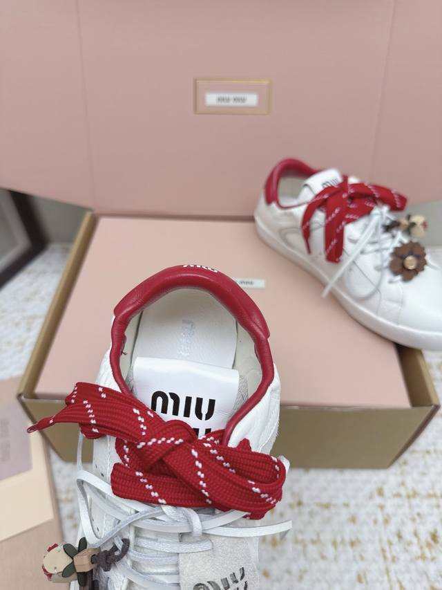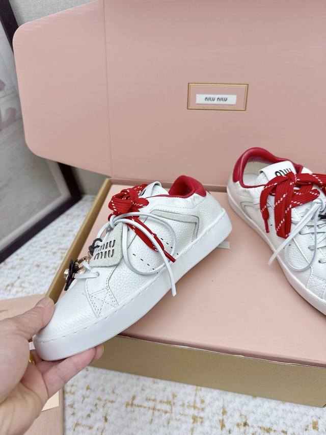 出厂 高版本 Miu Miu 26Ss 缪缪薄底饼干底 春夏新款英伦风系带 小白鞋秀场适当独一无二的擦色工艺工艺来自系列的细节特写 新季的潮流要素一 此刻挚爱的概念 多元对撞 传达现代风格~ 怎么穿都好看今夏时髦精最爱 看起来不怎么舒服 上脚超级舒服 面料:原版牛皮 内里:原版羊皮 大底:橡胶大底 Size:35-40 40 41.订做不退换
