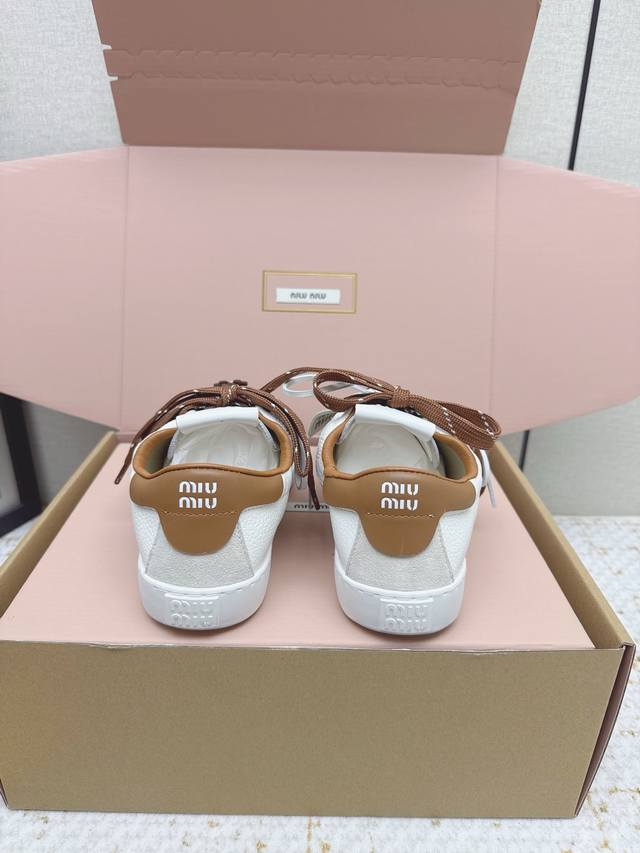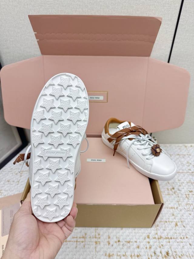 出厂 高版本 Miu Miu 26Ss 缪缪薄底饼干底 春夏新款英伦风系带 小白鞋秀场适当独一无二的擦色工艺工艺来自系列的细节特写 新季的潮流要素一 此刻挚爱的概念 多元对撞 传达现代风格~ 怎么穿都好看今夏时髦精最爱 看起来不怎么舒服 上脚超级舒服 面料:原版牛皮 内里:原版羊皮 大底:橡胶大底 Size:35-40 40 41.订做不退换