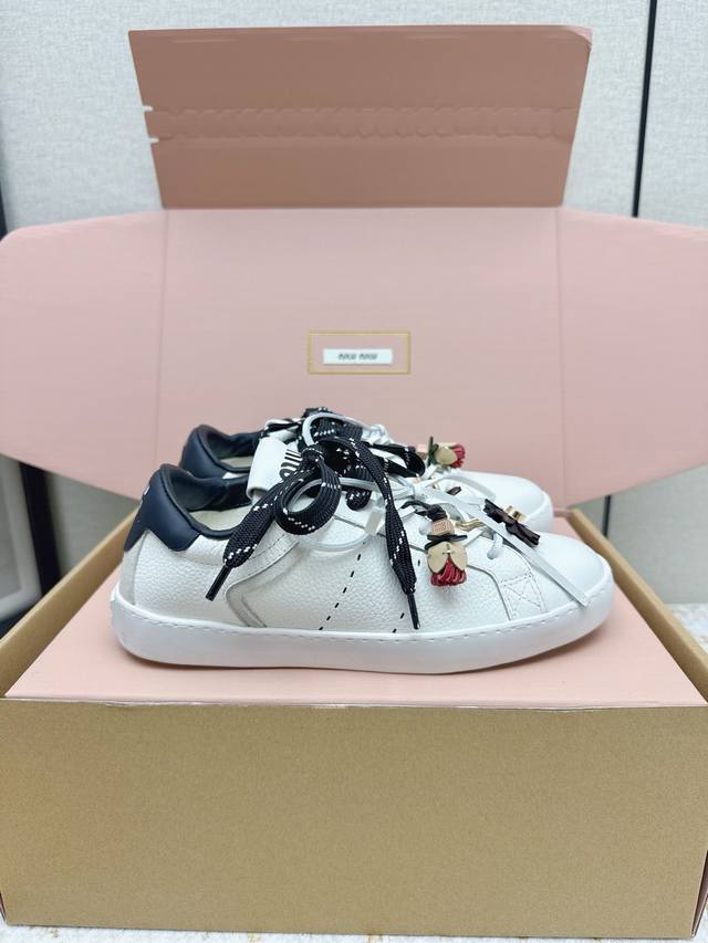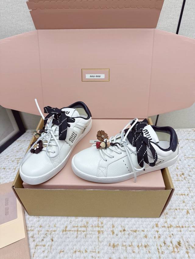 出厂 高版本 Miu Miu 26Ss 缪缪薄底饼干底 春夏新款英伦风系带 小白鞋秀场适当独一无二的擦色工艺工艺来自系列的细节特写 新季的潮流要素一 此刻挚爱的概念 多元对撞 传达现代风格~ 怎么穿都好看今夏时髦精最爱 看起来不怎么舒服 上脚超级舒服 面料:原版牛皮 内里:原版羊皮 大底:橡胶大底 Size:35-40 40 41.订做不退换