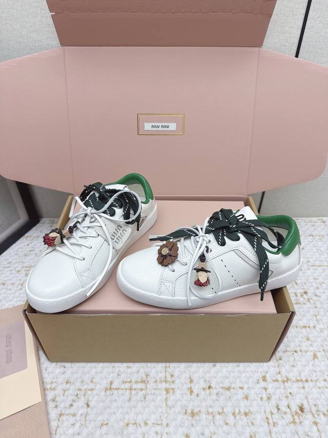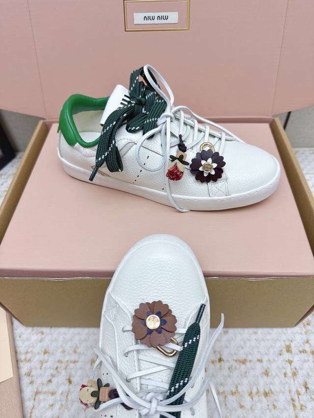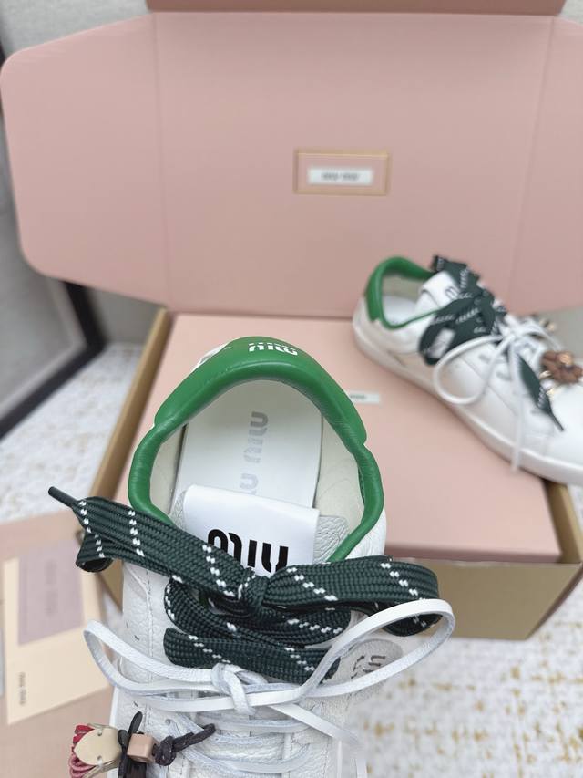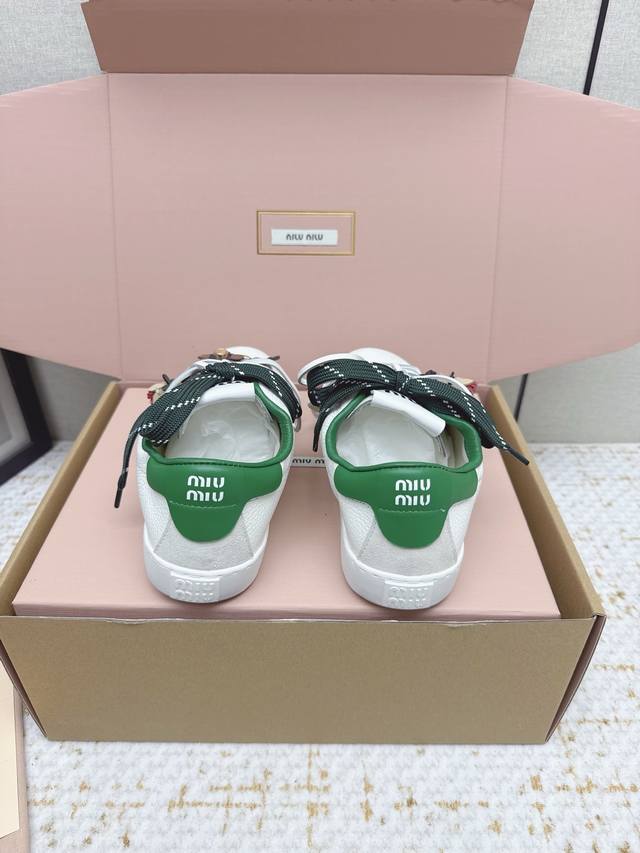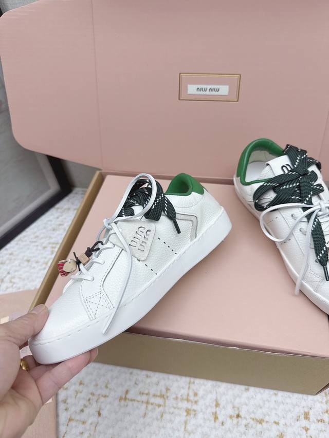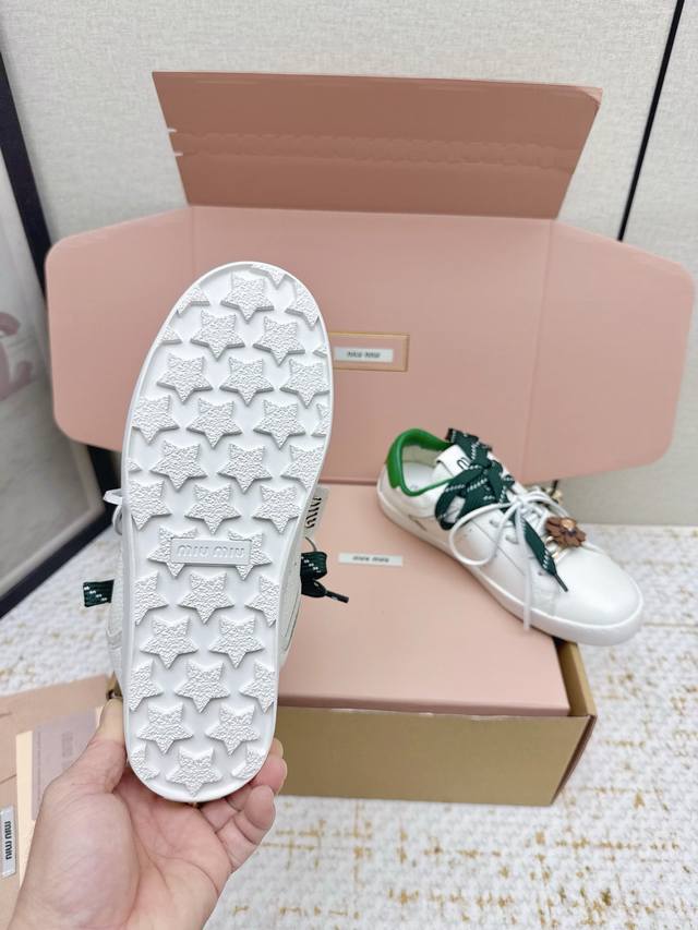 出厂 高版本 Miu Miu 26Ss 缪缪薄底饼干底 春夏新款英伦风系带 小白鞋秀场适当独一无二的擦色工艺工艺来自系列的细节特写 新季的潮流要素一 此刻挚爱的概念 多元对撞 传达现代风格~ 怎么穿都好看今夏时髦精最爱 看起来不怎么舒服 上脚超级舒服 面料:原版牛皮 内里:原版羊皮 大底:橡胶大底 Size:35-40 40 41.订做不退换