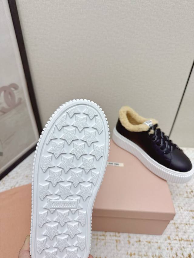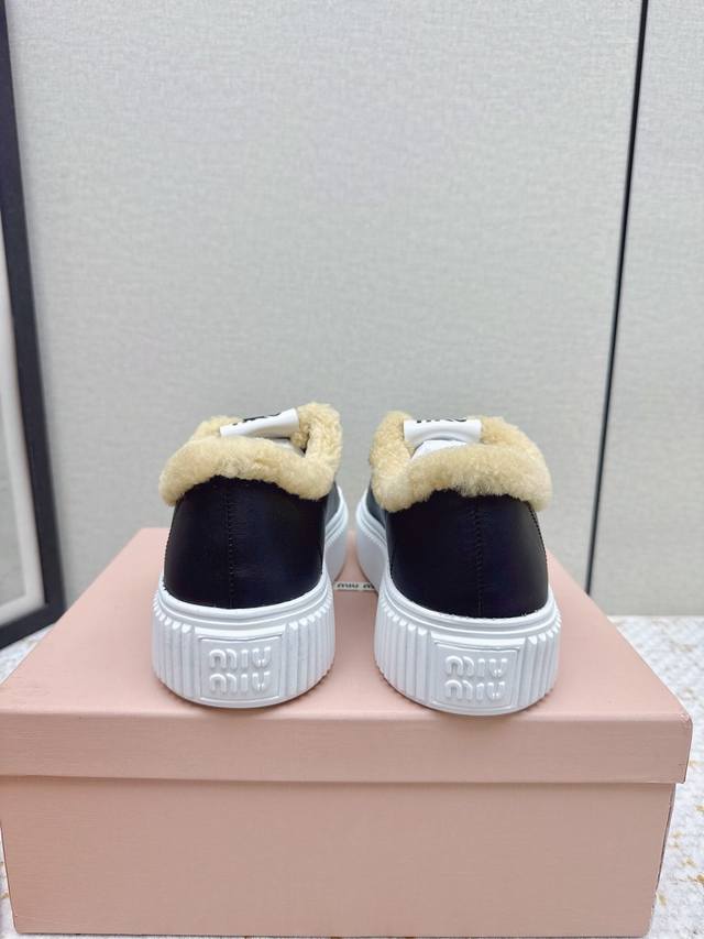 出厂 高版本 Miumiu 2025秋冬新款 羊毛厚底饼干鞋 冬季经典升级加羊毛 增高4厘米的同时,既有饼干鞋的秀气轻盈,又有毛毛质感的可爱和保暖性可谓是时尚与