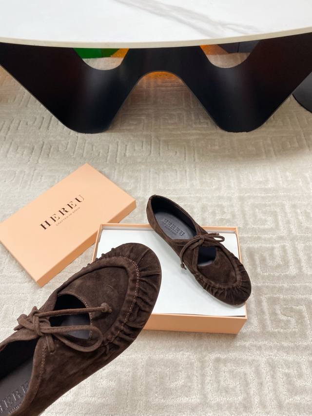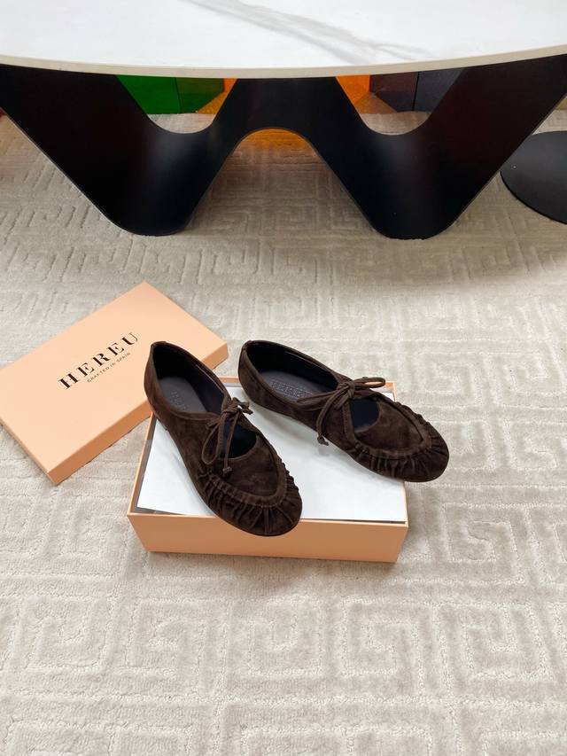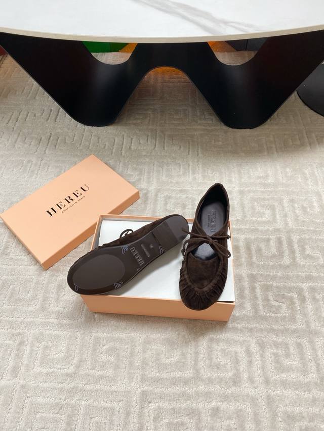 出厂 Hereu小众潮牌25Vs秋季新款系列 原版一比一打造舒适度、包裹性都比较好。个性十足,很好驾驭各种风格衣服搭配 面料:原版定制羊绒 内里:原版定制羊皮 垫脚:原版定制羊皮 大底:原版定制真皮大底 跟高:平底 包装:原版全套包装, 码数:35-39 40码定制不退换