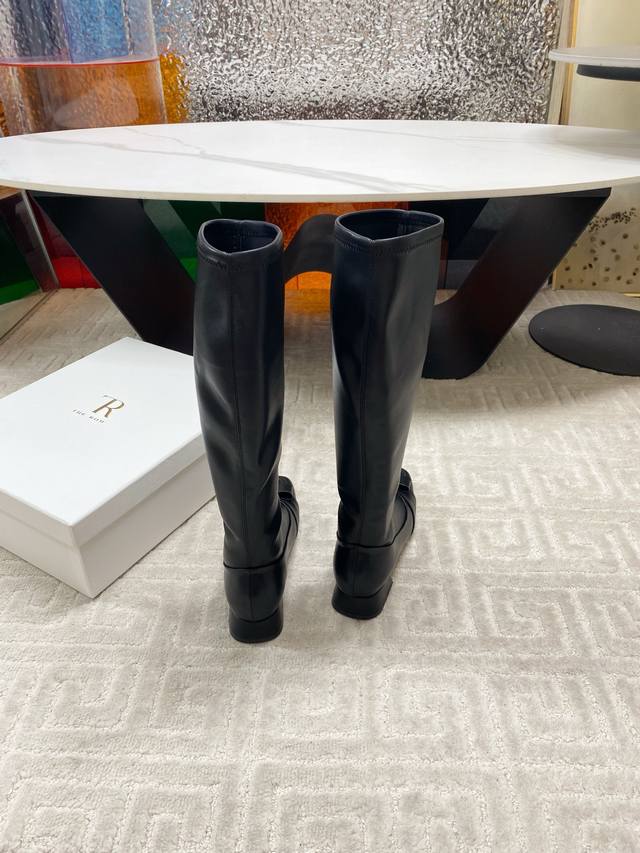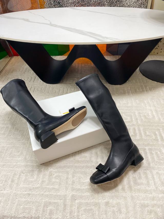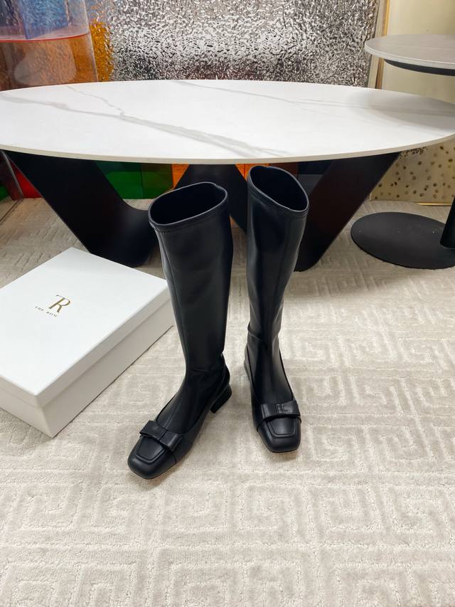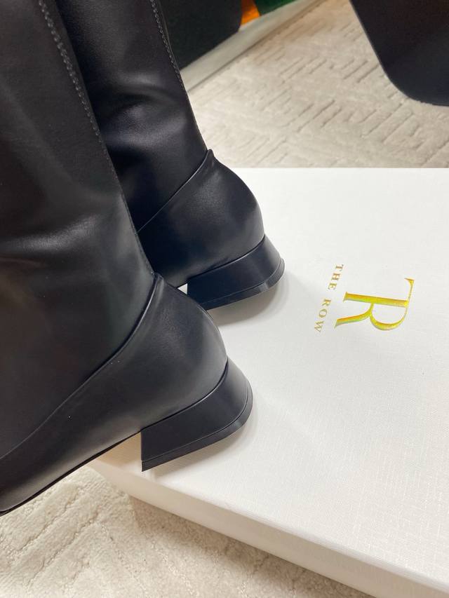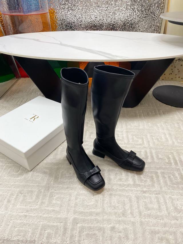 出厂 !The Row 25Ss秋冬新品蝴蝶结方头粗跟弹力长靴!弹力材质穿着起来舒适又有造型感,绝对是本季秋冬的必备单品 极简的线条 包裹的腿型超级显瘦 时髦度