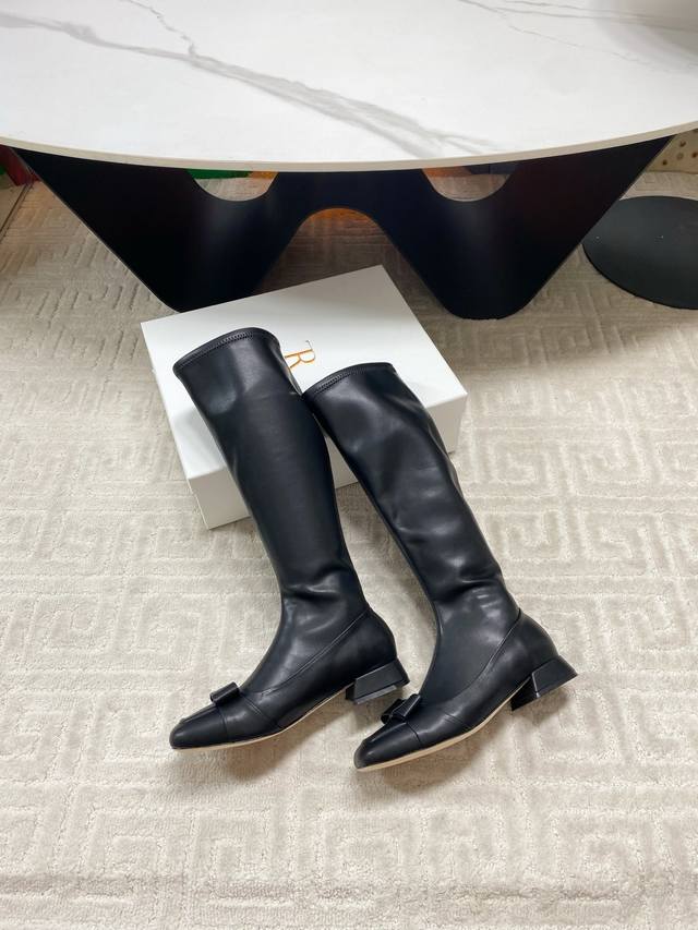 / 出厂 !The Row 25Ss秋冬新品蝴蝶结方头粗跟弹力长靴!弹力材质穿着起来舒适又有造型感,绝对是本季秋冬的必备单品 极简的线条 包裹的腿型超级显瘦 时髦度