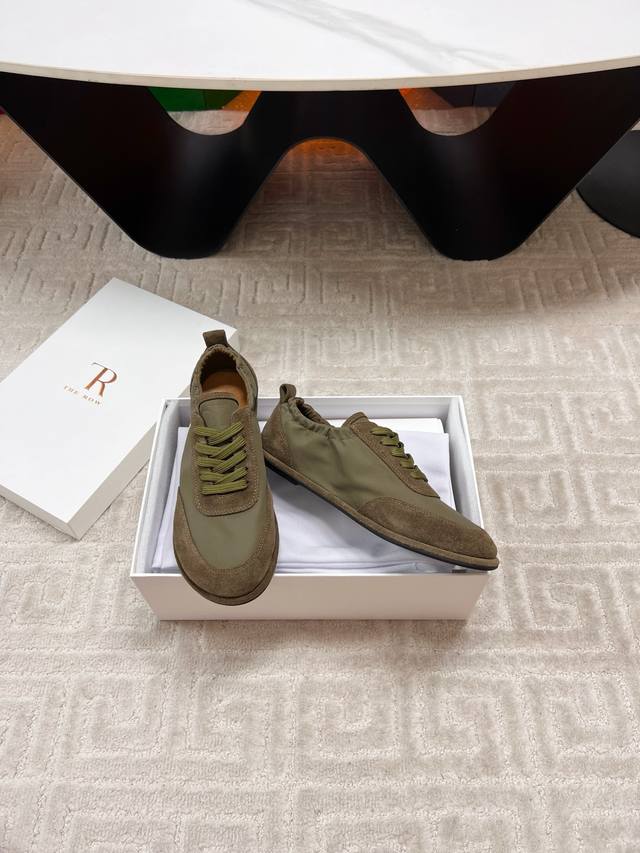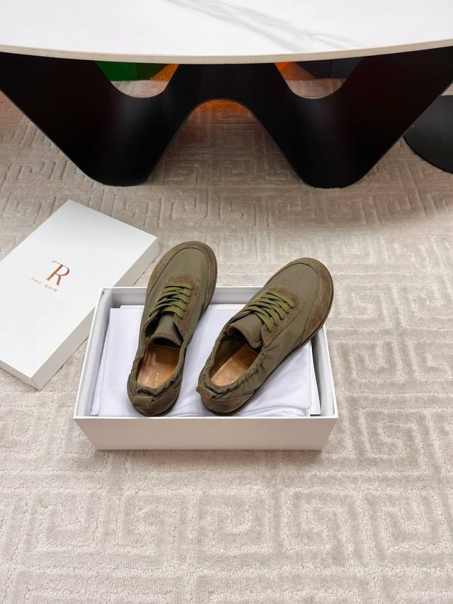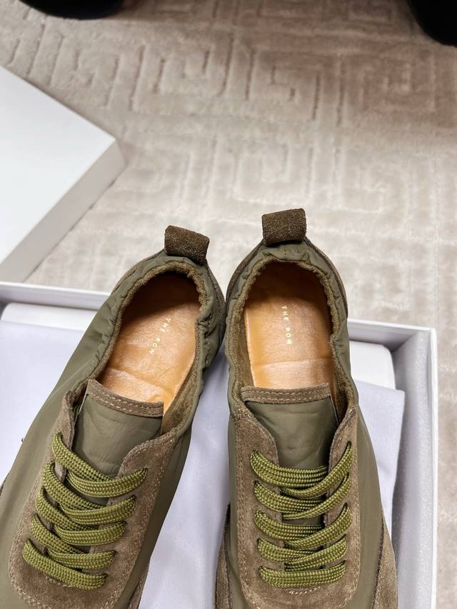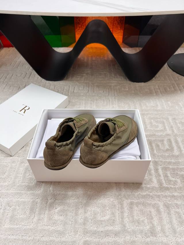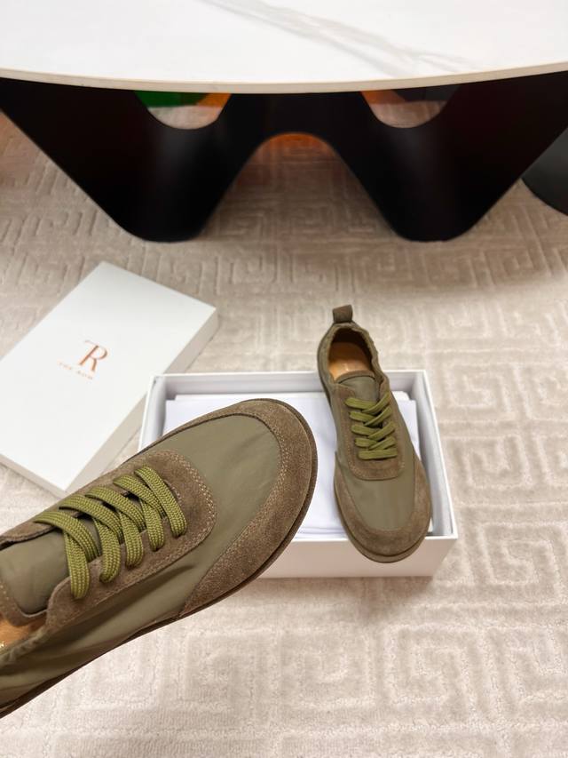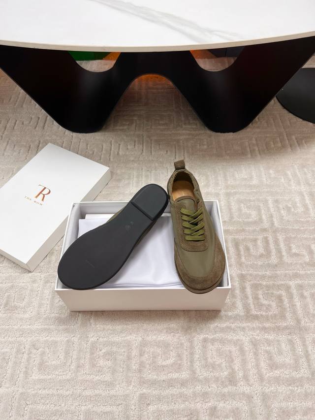 出厂 The Row26春夏最新简易拼色系带阿甘休闲鞋!小红书被点爆的一款最新单品!一眼情定The Row 板鞋!即便是一双普通的运动鞋Row 家依旧看起来充满高级感,搭配绿色复古有洋气,设计时髦倍增,经典圆头鞋楦呼应永远经典不过时,无敌百搭日常! 鞋面采用原版透气科技布拼接羊反绒 内里垫脚羊皮 原版开模橡胶大底 码数:35-39 40定做不退换