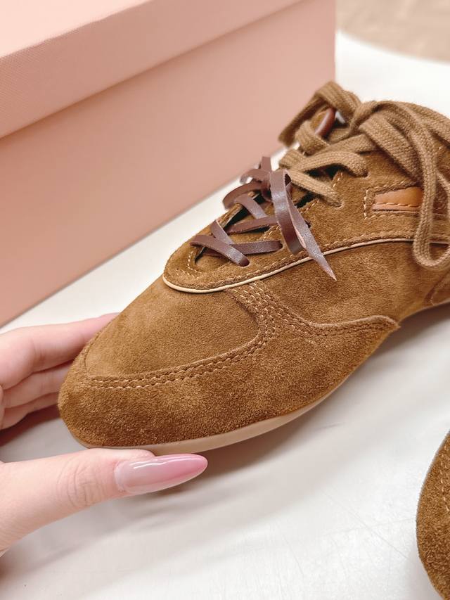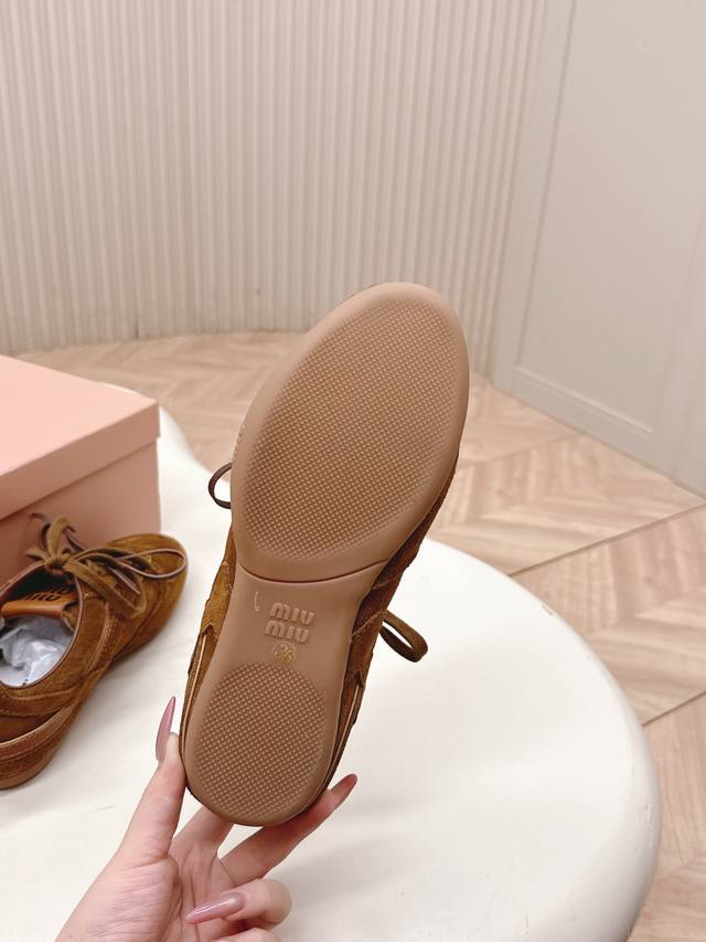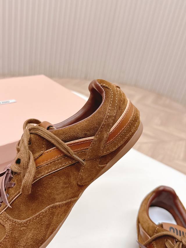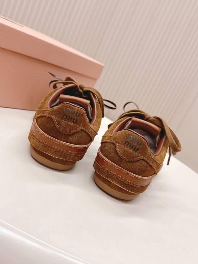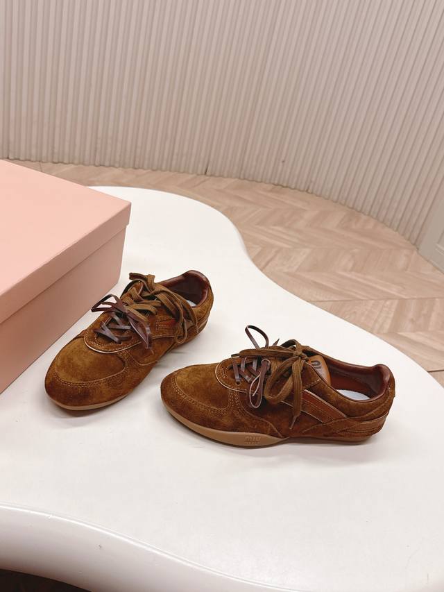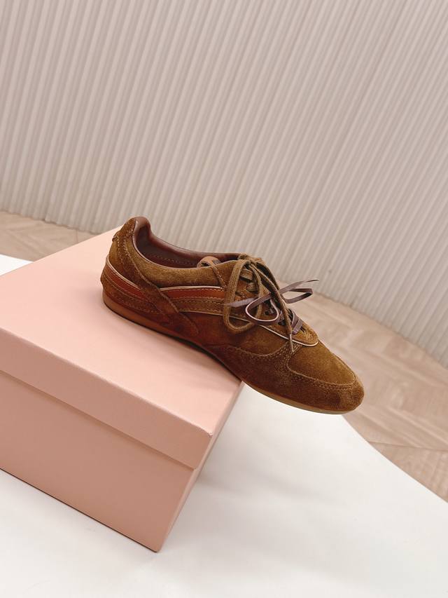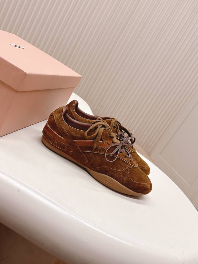 出皮里 羊毛里 Miumiu缪缪最新款美式复古风老休闲德训鞋 ~ 颜值担当火爆款运动鞋 不得不入的一款~做旧时尚,简约高级 随意搭配上脚非常舒适,年度必入款 最