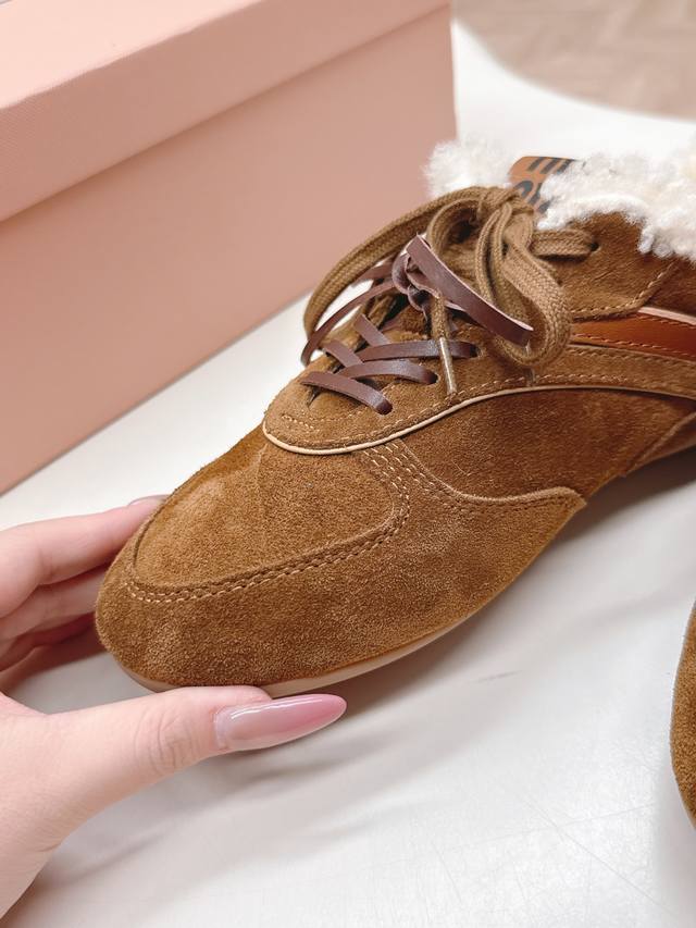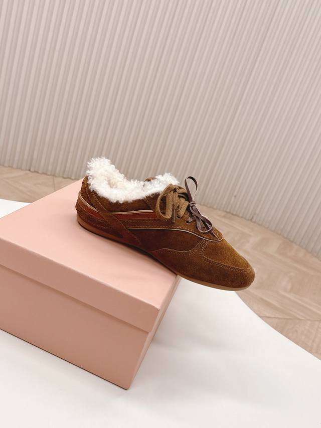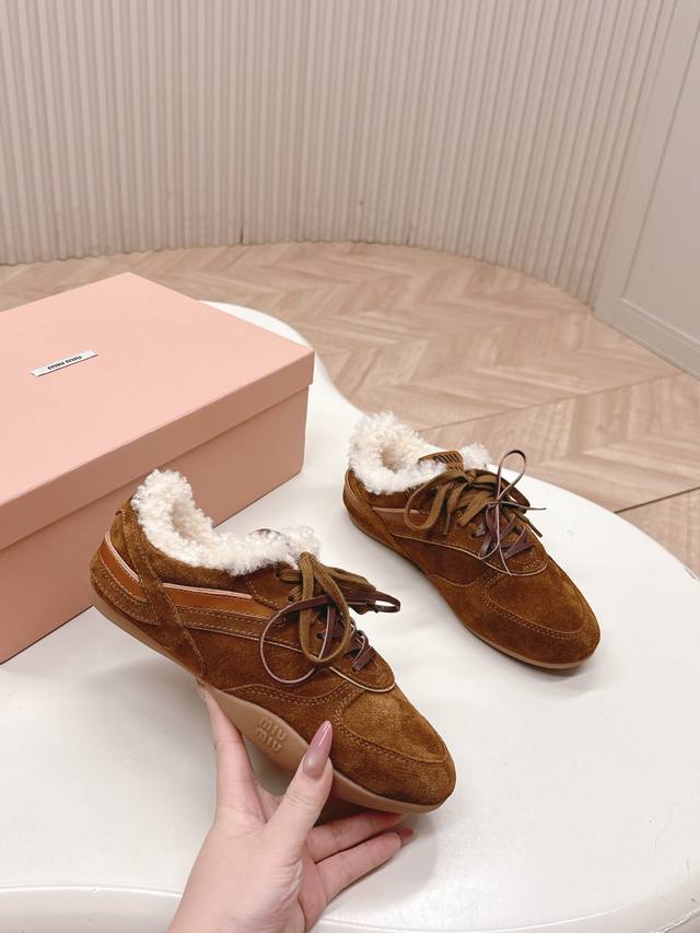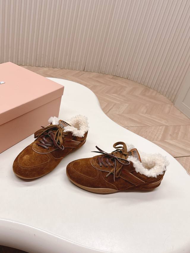 出羊毛里 Miumiu缪缪最新款美式复古风老休闲德训鞋 ~ 颜值担当火爆款运动鞋 不得不入的一款~做旧时尚,简约高级 随意搭配上脚非常舒适,年度必入款 最新走秀款运动老爹鞋国内外博主刷爆的一款,小红书种草系列,复古又时髦上脚美炸了简约的运动板鞋设计,极具辨识度的鞋舌,打造佛系甜美的休闲风~~上脚气场十足随意搭配 主流双鞋带设计 主打一个时尚选用进口牛皮磨砂皮网纱材质,内里混种羊皮里,原版私模大底 Size.:35-40