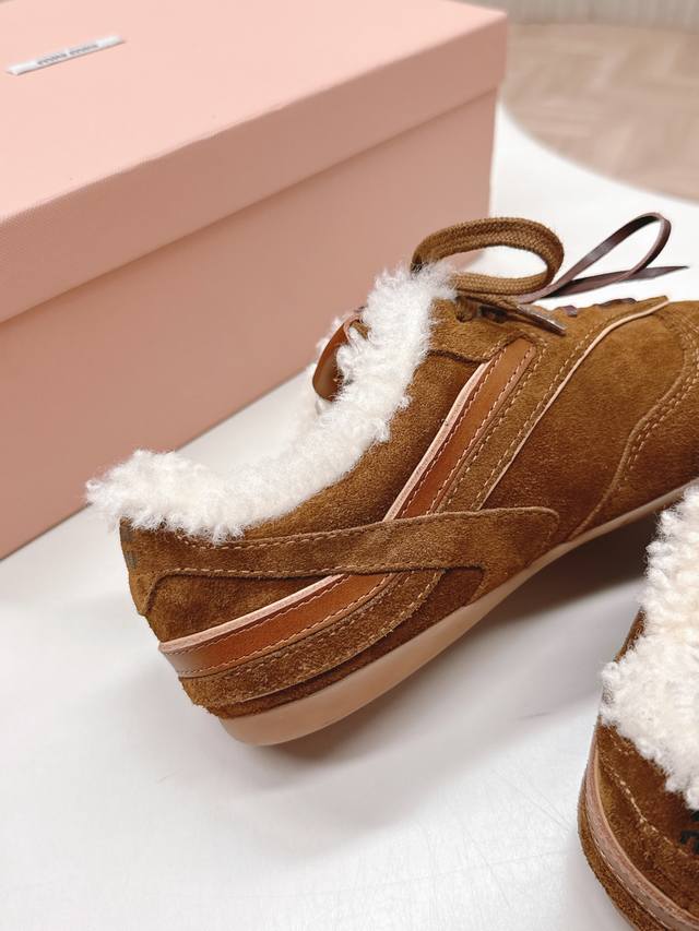 / 出羊毛里 Miumiu缪缪最新款美式复古风老休闲德训鞋 ~ 颜值担当火爆款运动鞋 不得不入的一款~做旧时尚,简约高级 随意搭配上脚非常舒适,年度必入款 最新走秀