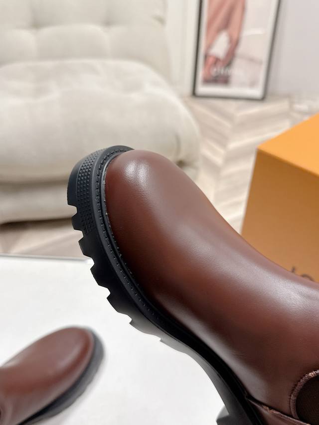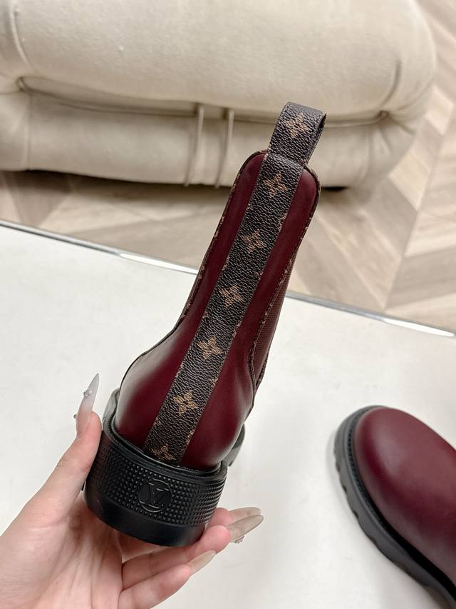 出 Lv驴牌 25Ss 新款秋冬马丁靴短靴 楦型百搭瘦脚Yyds.造型立体饱满,帅气十足 上脚舒适 非常复古风、气场十足,原版老花加橡筋设计风格非常经典 细节完