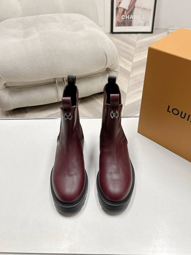 出 Lv驴牌 25Ss 新款秋冬马丁靴短靴 楦型百搭瘦脚Yyds.造型立体饱满,帅气十足 上脚舒适 非常复古风、气场十足,原版老花加橡筋设计风格非常经典 细节完美 酷炫 潮派。。。 鞋面:进口小牛皮 牛里、垫脚! Size: 35-39 40.41不退换