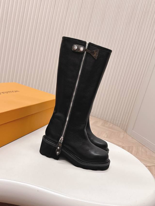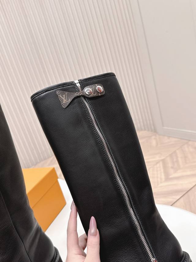 / 出 Lv驴牌 25Ss 新款秋冬高筒靴骑士靴 楦型百搭瘦脚Yyds.造型立体饱满,帅气十足 上脚舒适 非常复古风、气场十足,原版老花加橡筋设计风格非常经典 细节