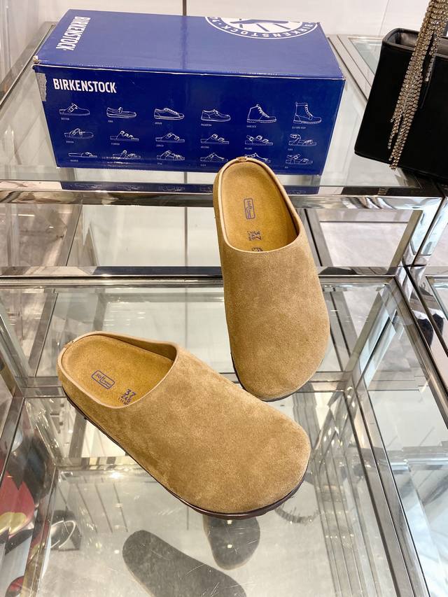 勃肯 羊毛包头半拖 原版開發 顶级进口高丝光牛反绒 软木乳胶鞋床 上脚超舒适百搭时尚 爱美的美眉们值得拥有 尺码35-45 [情侣款]