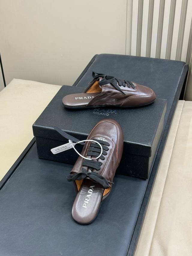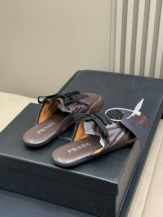 单鞋380拖鞋 Prada普拉达P家26Ssfw~New新款系带玛丽珍休闲鞋芭蕾舞鞋小皮鞋,低调奢华懒人鞋,富人的不二选择! 软胶底素有踩云感之称~舒适度百分百