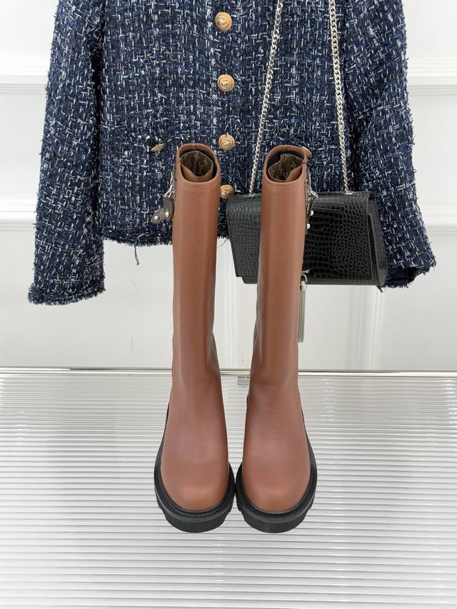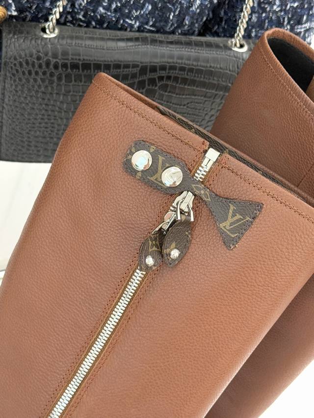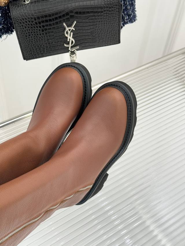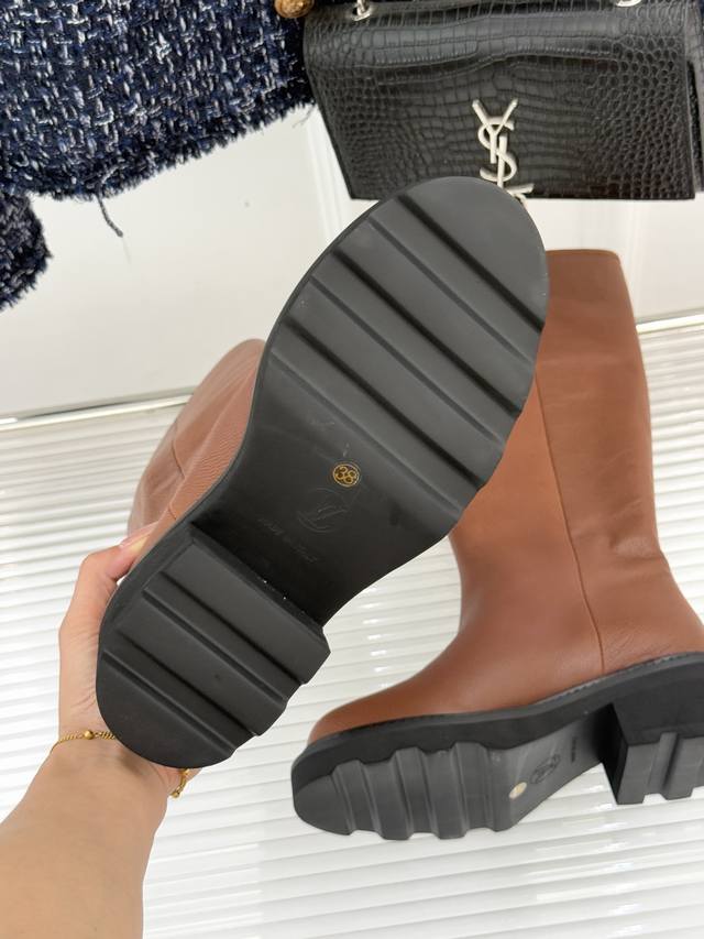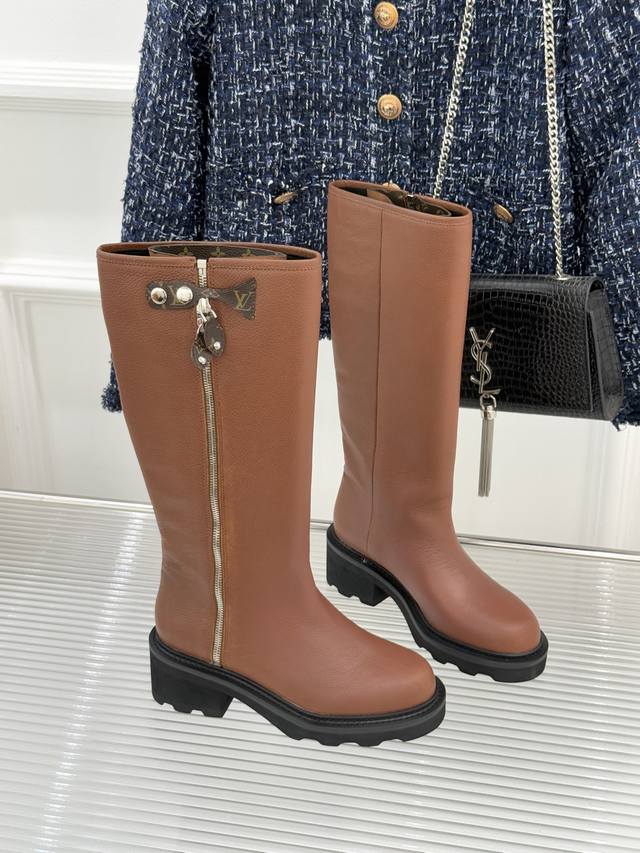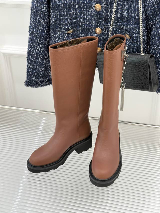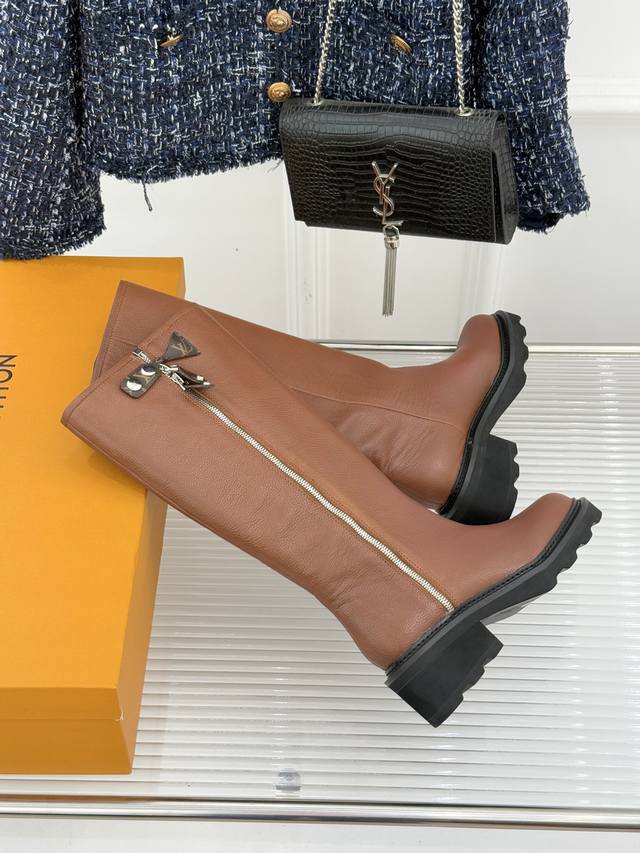 厂价 驴牌25Wf秋冬新品侧拉链厚底骑士靴 当骑士靴的飒爽基因邂逅Lv的奢华美学 这双厚底长靴便以“力量感优雅”破局 将经典靴型重塑为当代女性的风格铠甲。 自带品牌辨识度的同时更显层次 侧边金属拉链设计不仅是实用巧思 拉动时的利落声响与冷冽光泽 兼顾增高显腿长的视觉效 打破厚底鞋“笨重”的刻板印象。 及膝靴筒精准贴合腿部曲线 不挑腿型的微宽松廓形既能修饰小腿线条 又能轻松容纳裤装 搭配皮质风衣 是气场全开的都市女骑士 配短款皮衣与紧身裤 即便与柔美的针织长裙同穿 也能以刚柔并济的反差感惊艳全场。 面料采用
