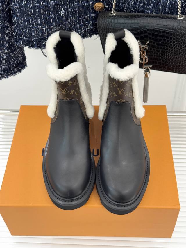 厂价 驴牌25Wf秋冬新品老花羊毛边切尔西 厚底短靴 当切尔西靴的利落廓形碰撞Lv百年基因 这款短靴以 复古暖意 重构奢华靴履定义 让经典元素在寒风中绽放格调张力。 鞋口一圈天然羊毛边轻盈包裹脚踝 既抵御-10℃低温侵袭 又为硬朗靴型注入暖冬温柔 与鞋身老花帆皮饰边形成刚柔碰撞。 每处细节都藏着百年工艺积淀 。 都是老花图腾与羊毛暖意的共生, 让秋冬出行既有奢感 又不失温暖妥帖。 面料采用原版定制小牛皮 内里垫脚均为羊皮 原版开模定制防滑大底 Size:35-39 40 41定制