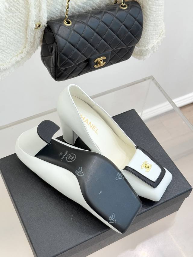 厂价 Chane*|小香25K走秀款双C 大方头高跟鞋 当巴黎大皇宫的秀场灯光聚焦于足尖 这双走秀款大方头高跟鞋便以利落姿态 写下经典与创新的时尚注解 。 标志