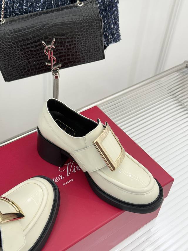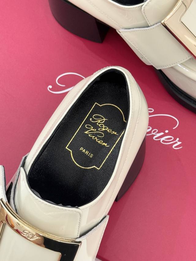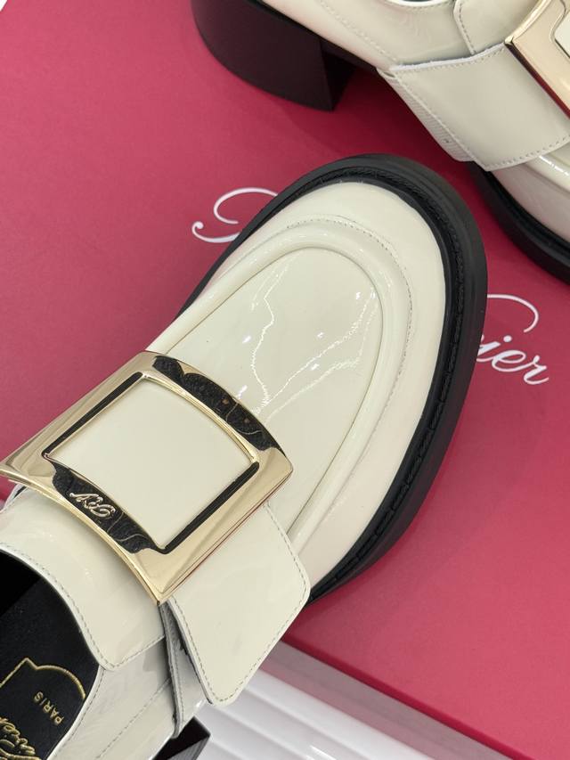 厂价 Roger Vivier Rv25Wf新品金属方扣 粗跟厚底乐福鞋 当半世纪的方扣传奇邂逅现代厚底风潮 这款乐福鞋以标志性美学重塑日常格调。 品牌传承至今的金属方扣缀于鞋头 线条利落既是对1965年经典设计的致敬 更是伊丽莎白女王同款优雅基因的当代延续。 粗跟厚底设计暗藏巧思 悄悄拉长腿部线条的同时 搭配稳固粗跟与橡胶外底, 让每一步都稳健从容 堪称优雅与舒适的完美平衡 。 从职场的精裁西装到周末的牛仔夹克, 从秋日裙到冬日的大衣 都能无缝适配 轻松切换干练与慵懒风格 。 这双备受明星青睐的乐福鞋,