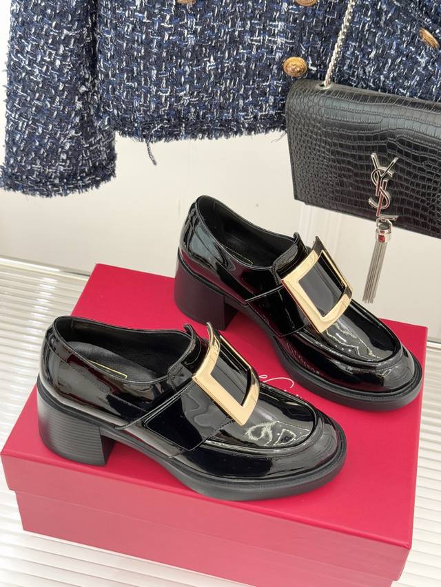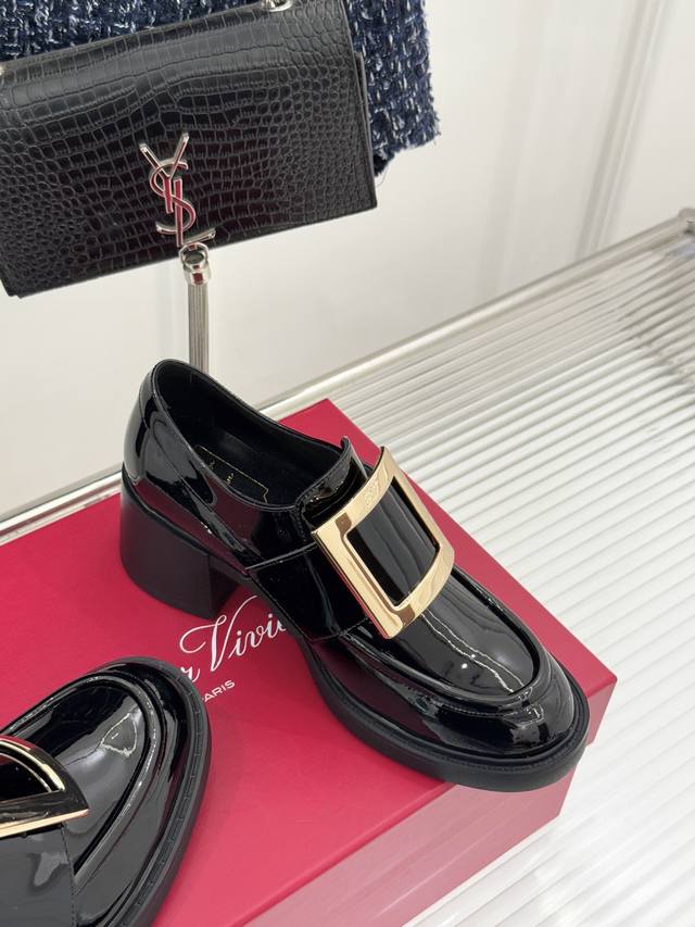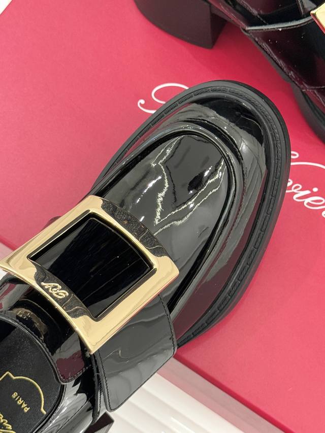 厂价 Roger Vivier Rv25Wf新品金属方扣 粗跟厚底乐福鞋 当半世纪的方扣传奇邂逅现代厚底风潮 这款乐福鞋以标志性美学重塑日常格调。 品牌传承至今的金属方扣缀于鞋头 线条利落既是对1965年经典设计的致敬 更是伊丽莎白女王同款优雅基因的当代延续。 粗跟厚底设计暗藏巧思 悄悄拉长腿部线条的同时 搭配稳固粗跟与橡胶外底, 让每一步都稳健从容 堪称优雅与舒适的完美平衡 。 从职场的精裁西装到周末的牛仔夹克, 从秋日裙到冬日的大衣 都能无缝适配 轻松切换干练与慵懒风格 。 这双备受明星青睐的乐福鞋,