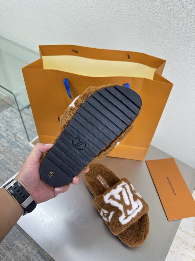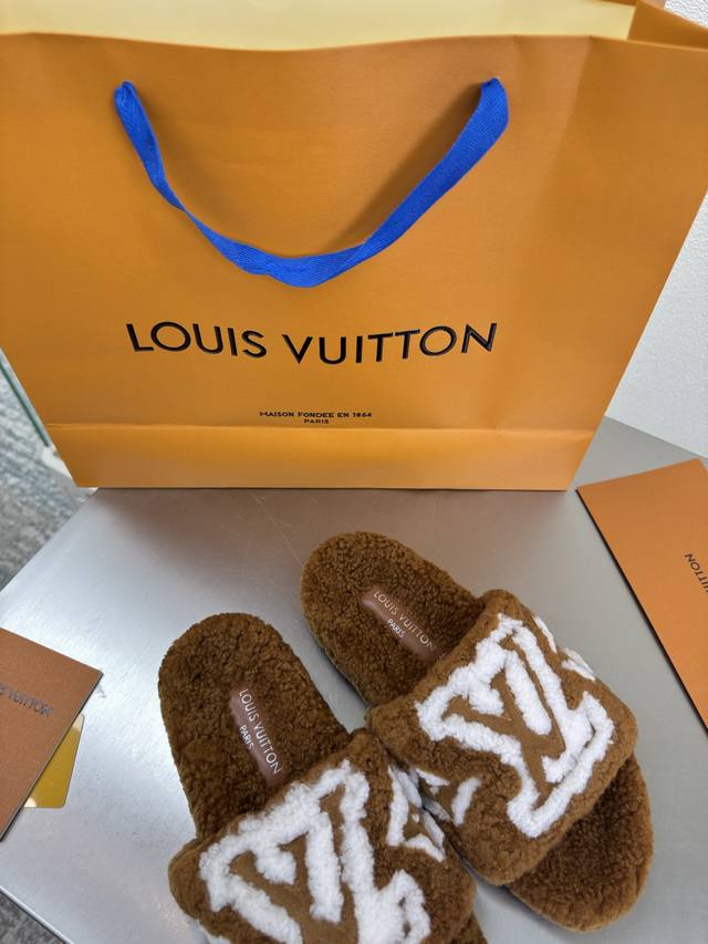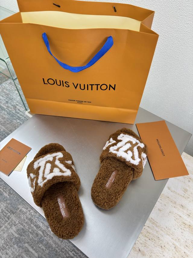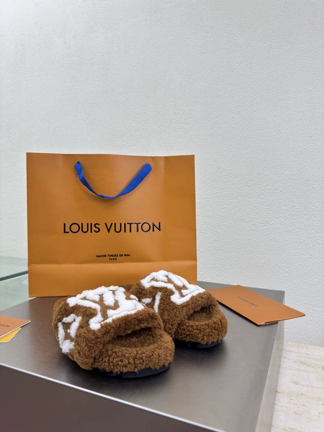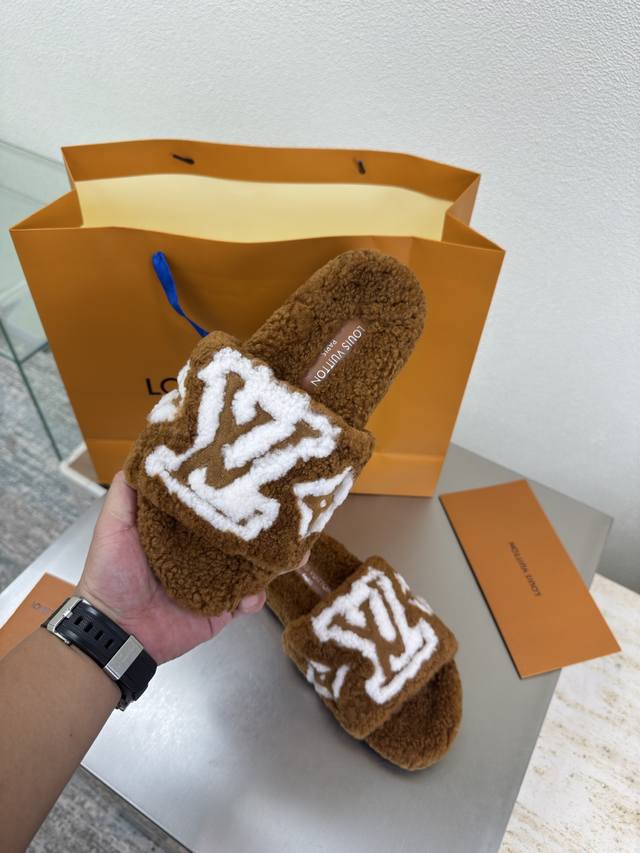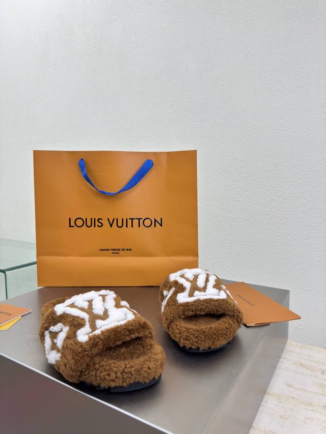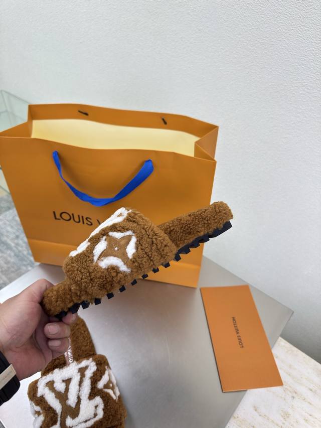 / 双影拼色款 进口羊羔毛拖鞋 L驴超高性价比 包装 高品质 无瑕疵 5种配色 焦糖色羊羔毛 双影拼色Logo Lv 打造 使得 Lv 仍能为创作者、青年玩家,提供