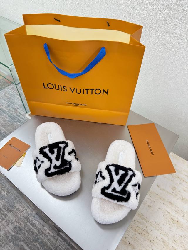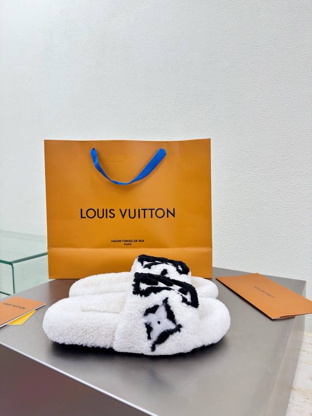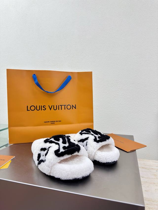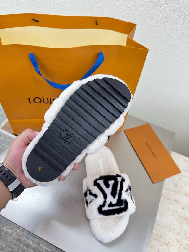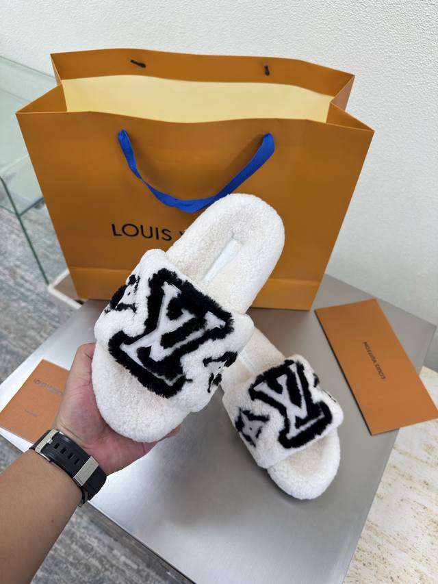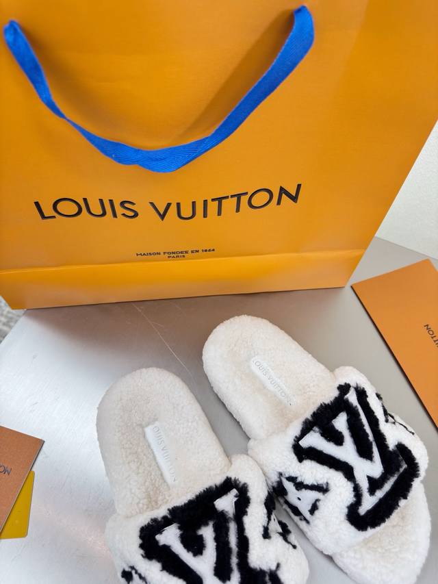 双影拼色款 进口羊羔毛拖鞋 L驴超高性价比 包装 高品质 无瑕疵 5种配色 米白色羊羔毛 双影拼色Logo Lv 打造 使得 Lv 仍能为创作者、青年玩家,提供
