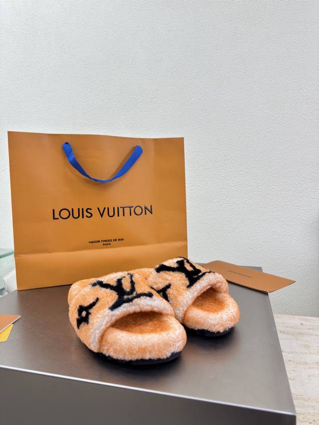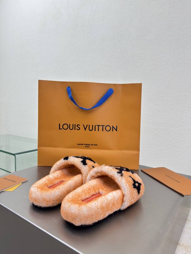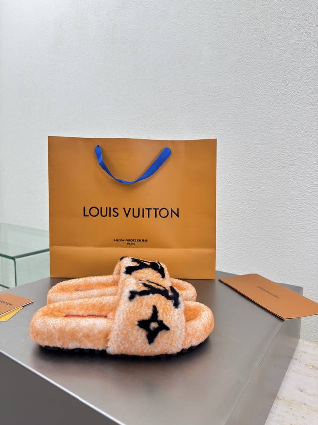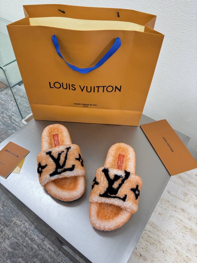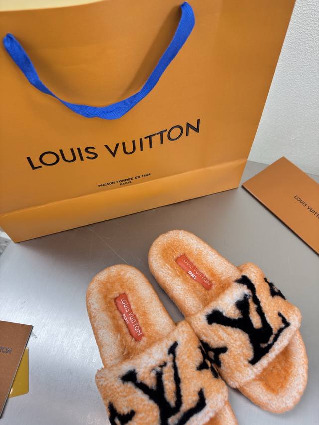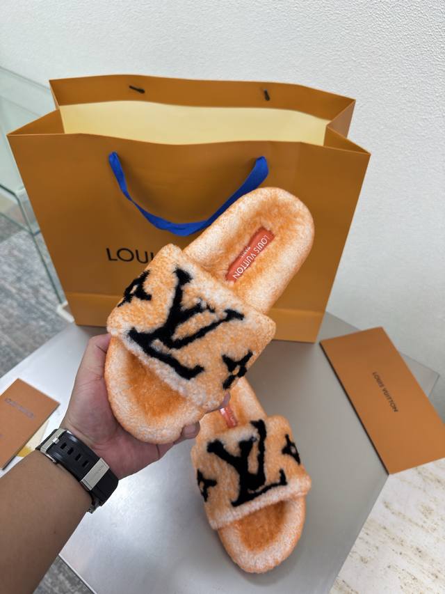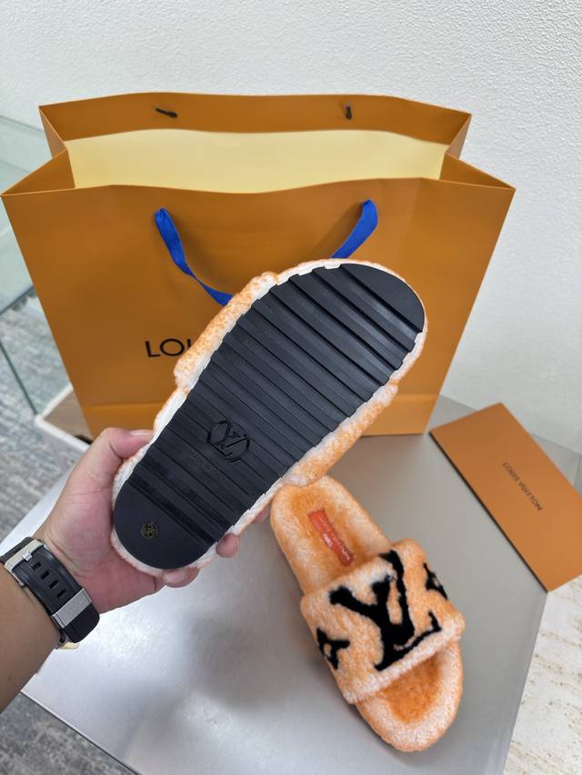 / 双色效果 拼色Logo 进口羊羔毛拖鞋 L驴超高性价比 包装 高品质 无瑕疵 5种配色 橘色羊羔毛 钻石手工缝制 Logo Lv 打造 使得 Lv 仍能为创作者