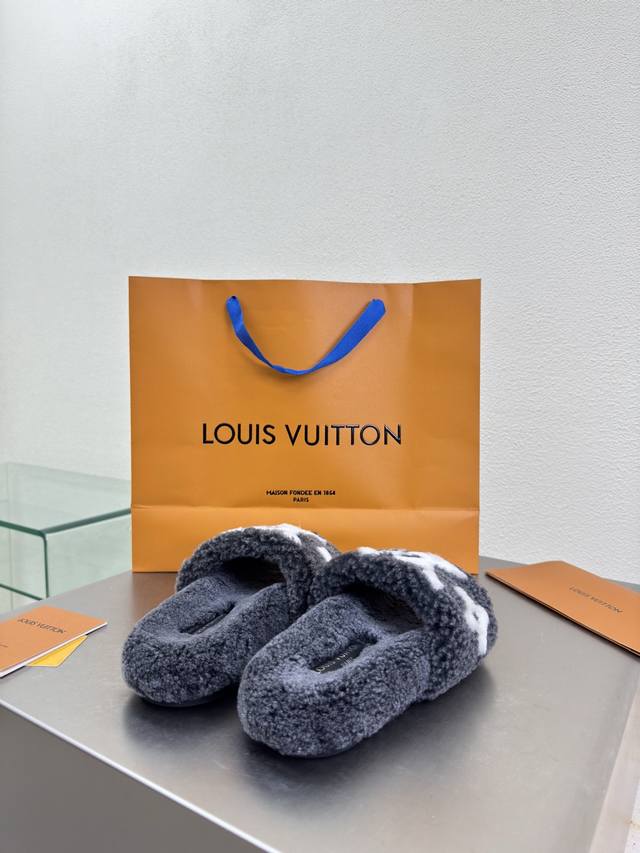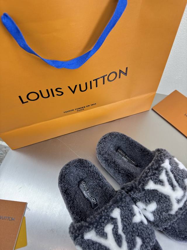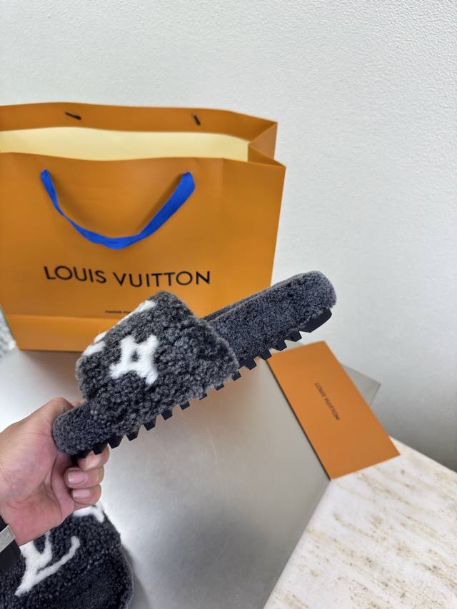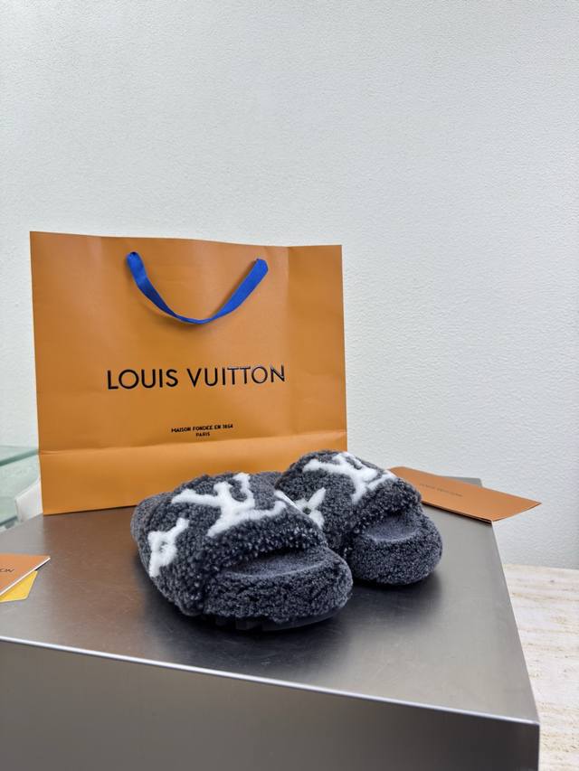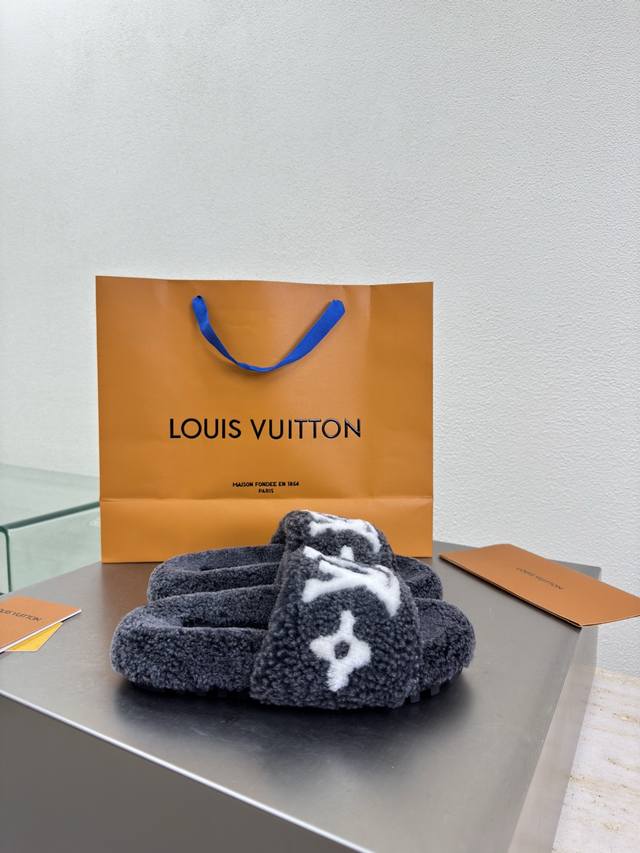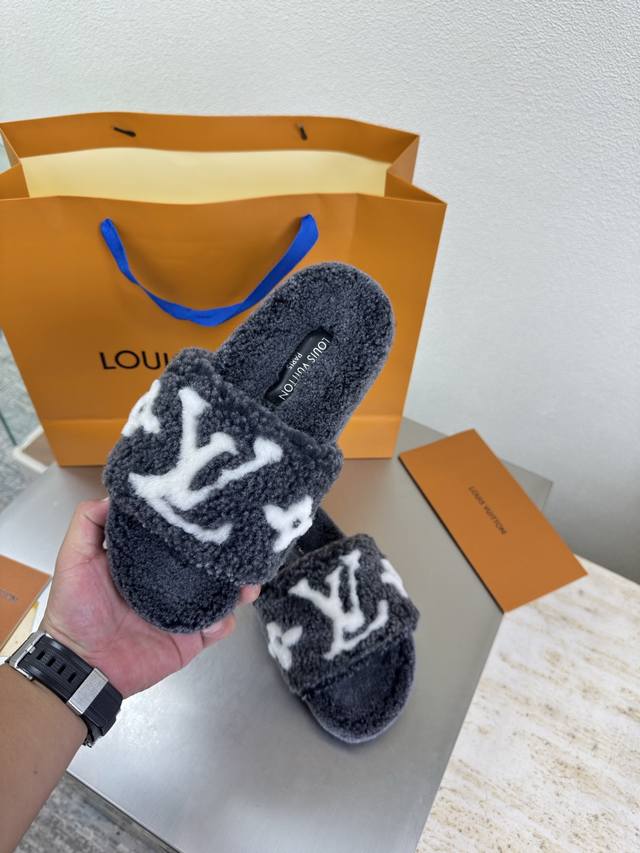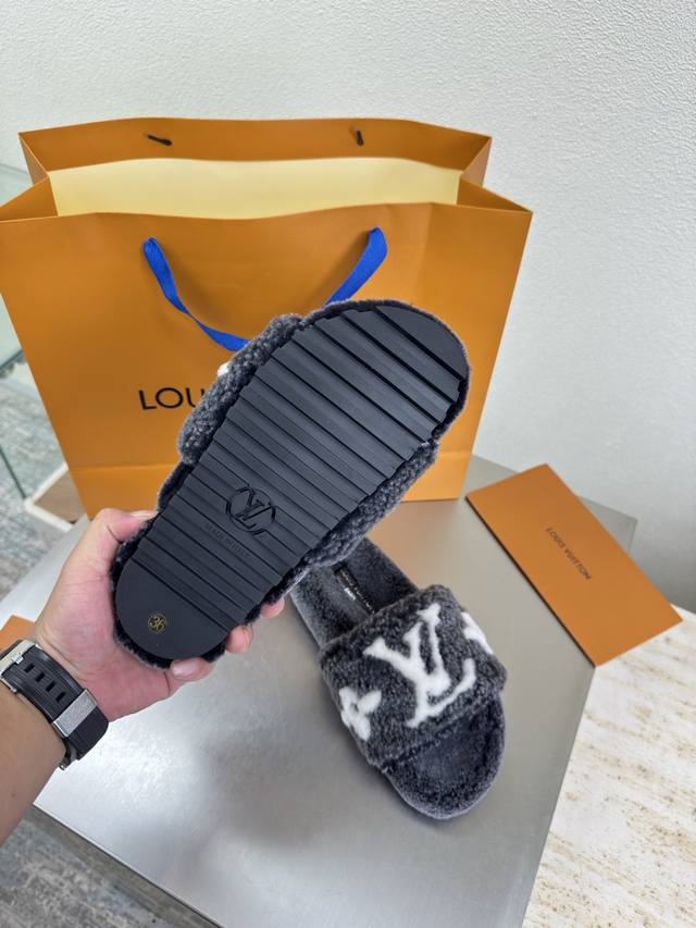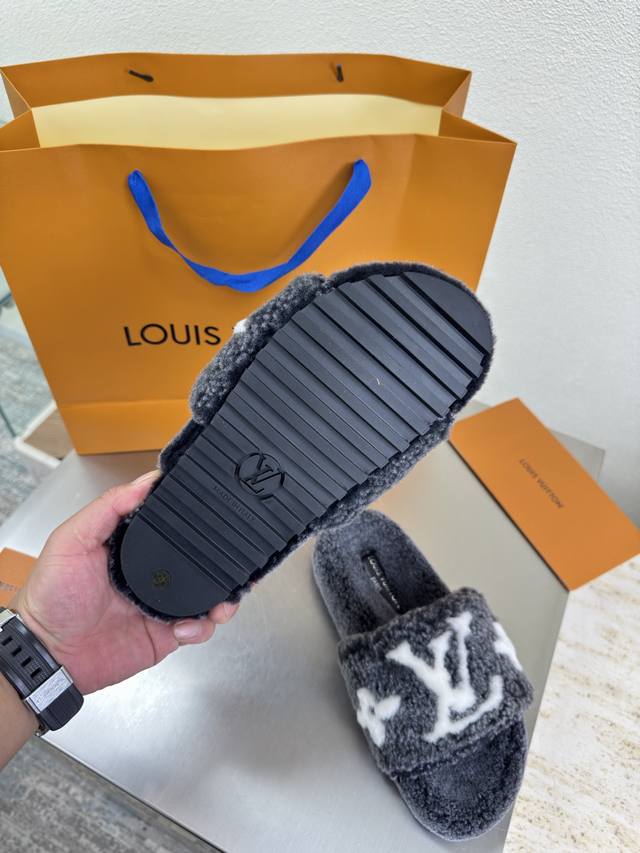 / 双色效果 拼色Logo 进口羊羔毛拖鞋 L驴超高性价比 包装 高品质 无瑕疵 5种配色 黑色羊羔毛 钻石手工缝制 Logo Lv 打造 使得 Lv 仍能为创作者