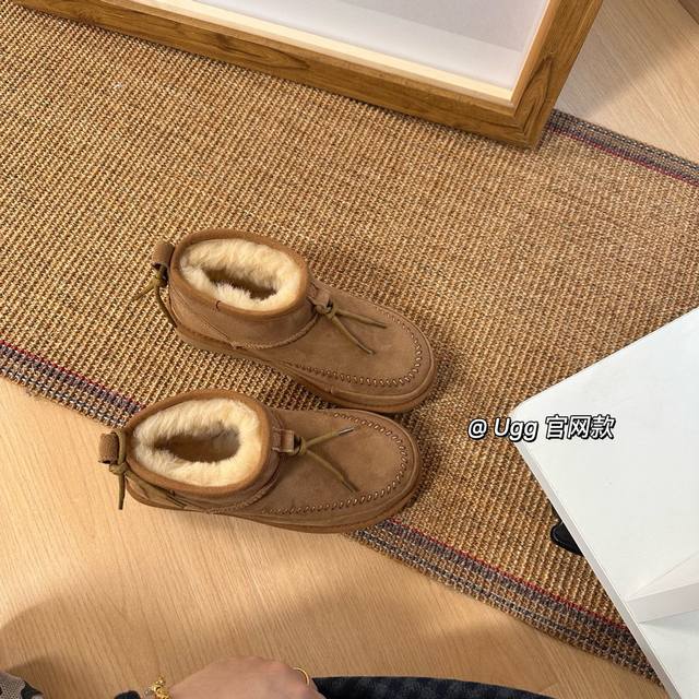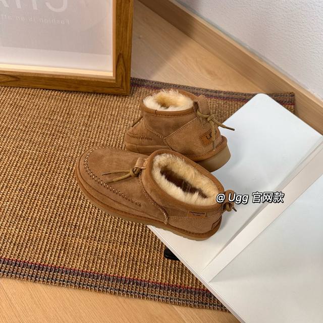 塔斯曼.冬季专柜同款时尚舒适纯色平底圆头浅口塔斯曼休闲便鞋1152747 名:Ultra Mini Crafte Dregenerate 超短靴 手作环保 款 材质:羊毛皮 羊皮革 官网同步,两色,35-40码!