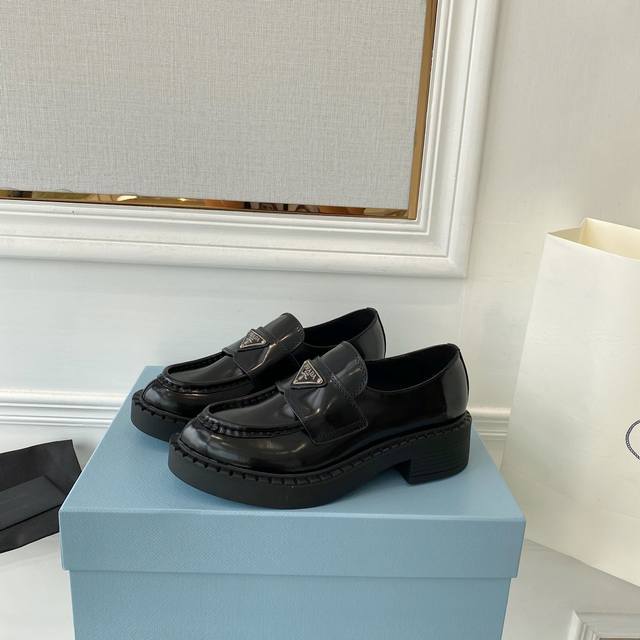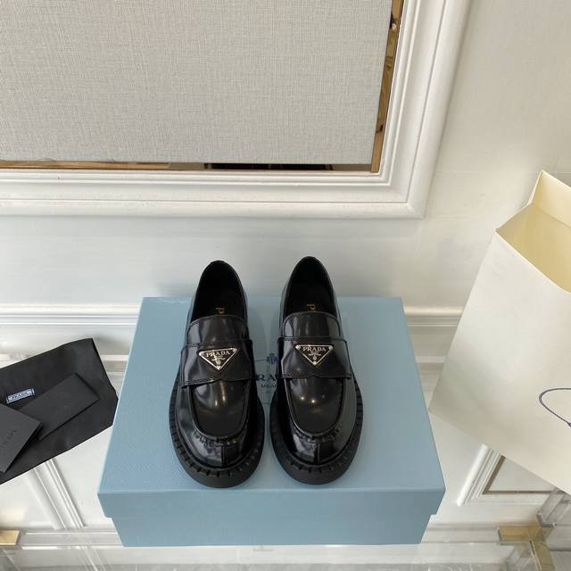 / 女款 男款 新款黑色开边朱厚底休闲小皮鞋,刘雯众多网红上脚,Prad这款松糕厚底鞋今年非常爆,穿上 增高 休闲两不失误,清爽的表现足以表达对鞋子的个个细节的把控