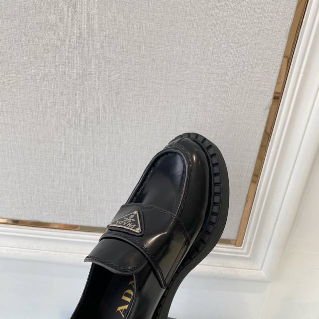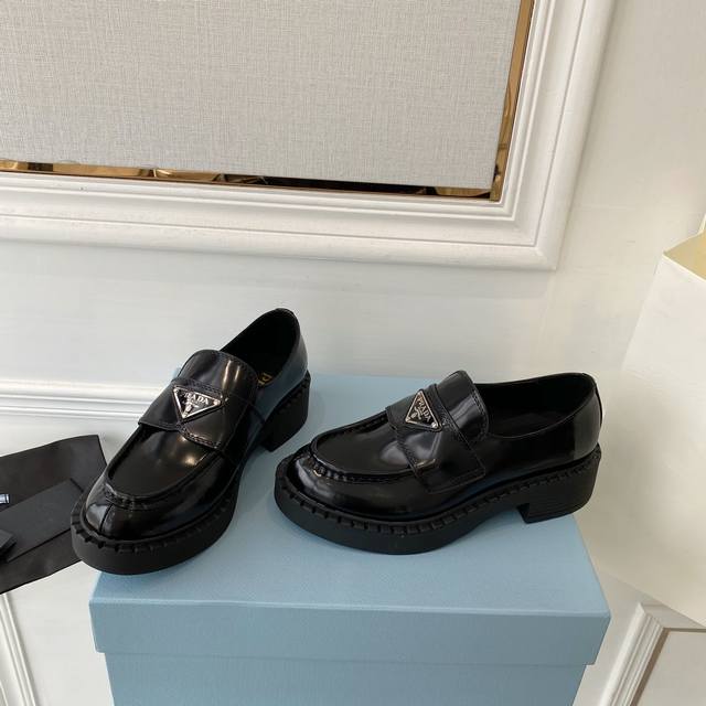 女款 男款 新款黑色开边朱厚底休闲小皮鞋,刘雯众多网红上脚,Prad这款松糕厚底鞋今年非常爆,穿上 增高 休闲两不失误,清爽的表现足以表达对鞋子的个个细节的把控