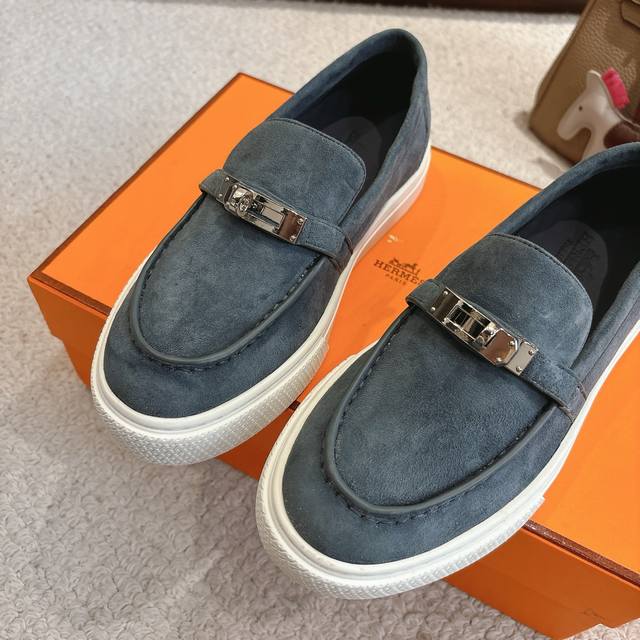 / 女款 男款70Hermes 运动鞋系列 时尚又百搭 上脚超级舒服 每个细节都做到极致 独家定制私模纯钢带保护膜Kelly五金扣件 原版定制麂皮 小牛皮 内里混种