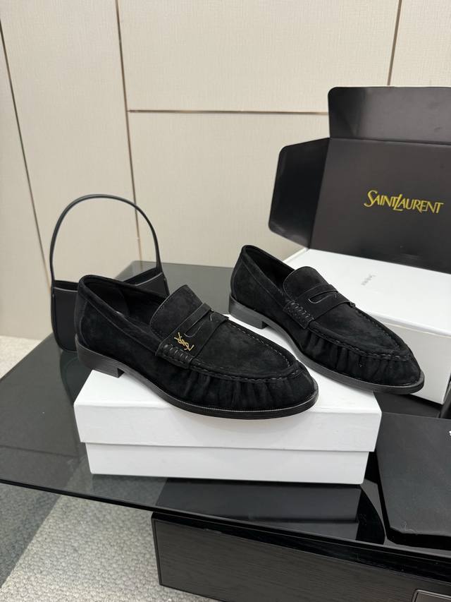 女码: 男码:350 Saint Lauren*Ysl圣罗兰25Ss新品 Ysl小Logo乐福鞋单鞋 标志性的小Logo是这双鞋的灵魂所在 以低调而精致的姿态呈