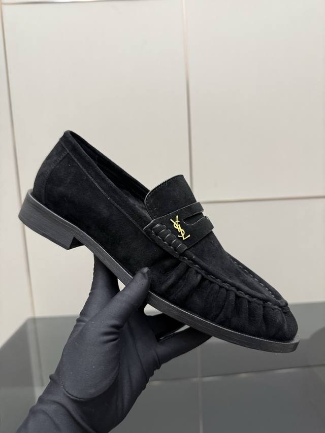 女码: 男码:350 Saint Lauren*Ysl圣罗兰25Ss新品 Ysl小Logo乐福鞋单鞋 标志性的小Logo是这双鞋的灵魂所在 以低调而精致的姿态呈现于鞋身之上。 不同于张扬的大标识 它安静却醒目 用简洁线条勾勒出Ysl独有的时尚Dna 在不经意间透露出品牌的深厚底蕴 鞋头的经典杏仁形设计 巧妙修饰脚型 在视觉上拉长足部线条 彰显优雅与秀气 。 无论是搭配简约阔腿裤 还是俏皮小短裙 都能轻松驾驭 展现不同风格魅力 成为造型中的点睛之笔。 面料采用原版定制皮料 内里垫脚均为羊皮 意大利进口真皮大