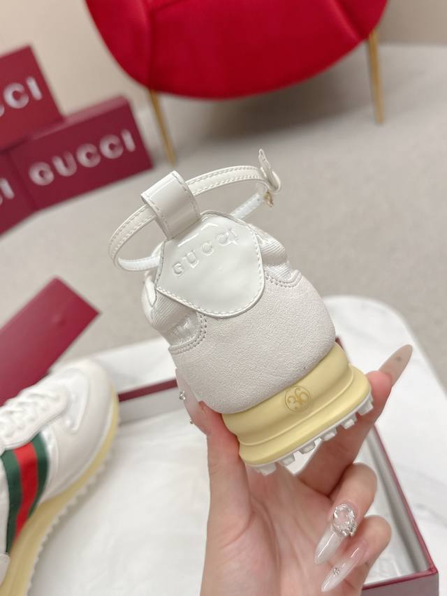 女 Gucci古驰2025最新春夏走秀款 运动鞋 阿甘鞋 超火的25秀款单品 出镜率超高 好多明星网红种草 经典的鞋型设计采用创新缝线工艺打造如水般的流动质感 上脚超级舒适 皮革拼接透气Logo布加上经典绿红织带点缀 无不彰显品牌调性 扣子可拆卸 原版开模组合大底Size:女35-39 女40 定制 不退换