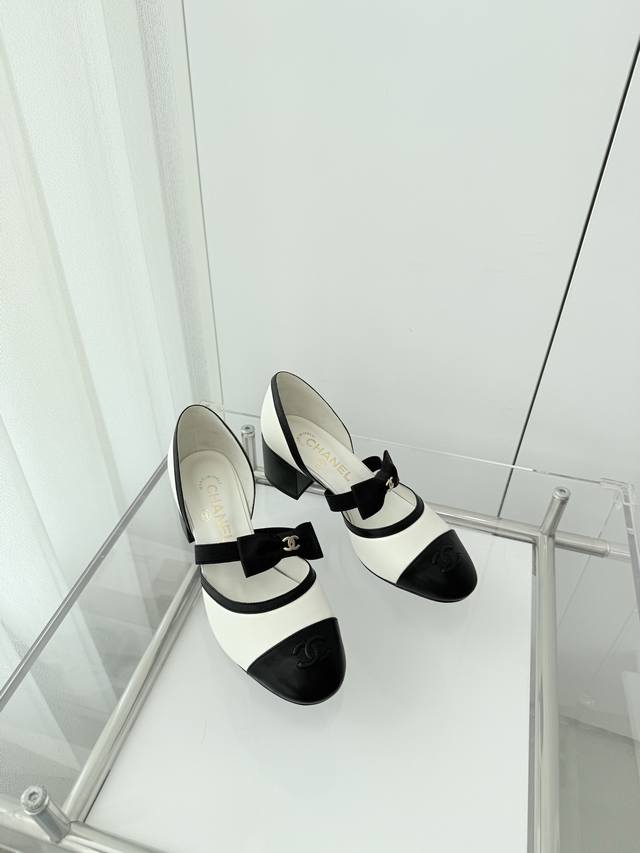 Chanel~~香奈儿经典百搭高跟拼接单鞋玛丽珍女鞋...