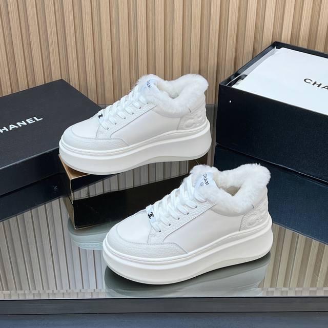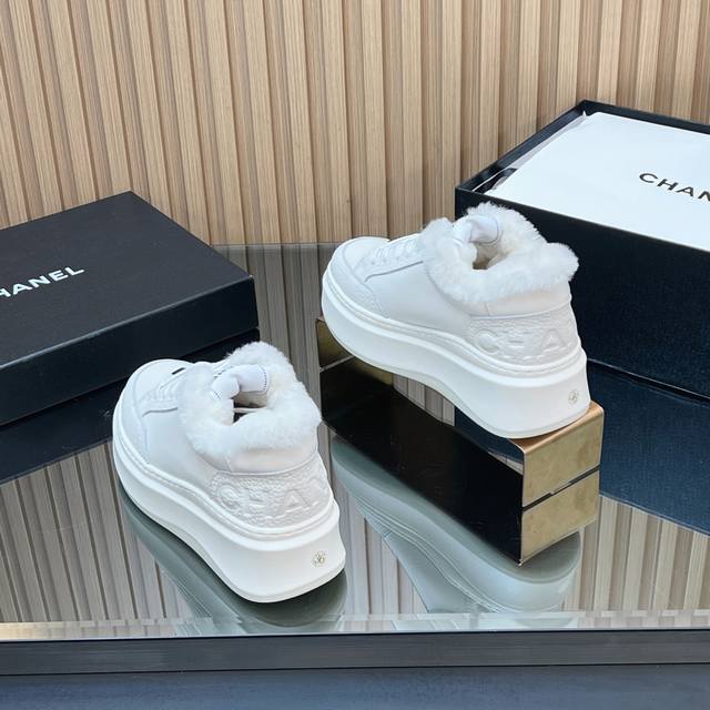 工厂P价 高版本!真羊毛内里 厚底饼干鞋Chanel香奈儿经典熊猫 保暖小白鞋休闲运动鞋 C家 专柜又一超级大爆款,网红博主小姐姐们的挚爱,社交平台的各种夸赞,人气超高质感透气超级春夏,看到这期总能唤起少女内心对时髦的诉求 最新麂皮材质 经典黑白配色 上脚时髦感十足 容易打理 面料: 原版定制牛皮 内里:羊皮毛一体内里 鞋底:原版开模防滑大底 底厚:4Cm Size: 女款35-40 配送专柜精美包装