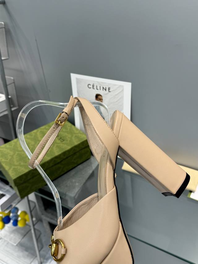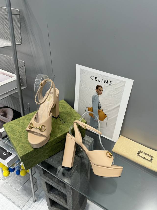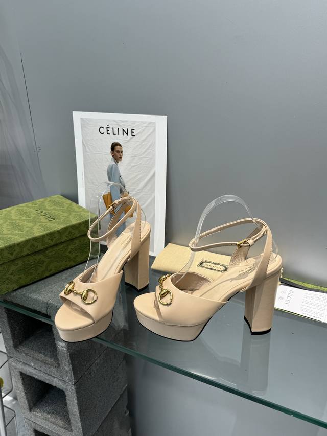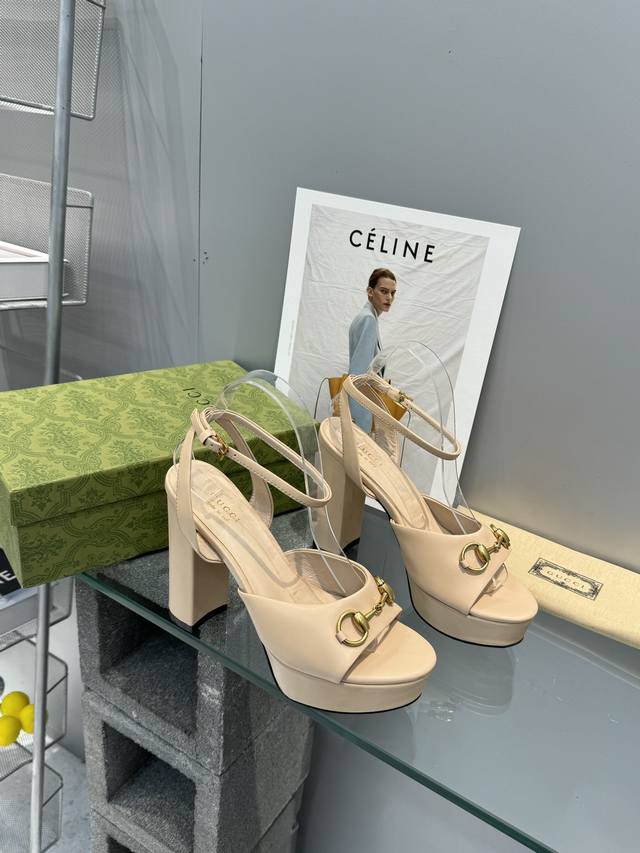 / 工厂P价 G家顶级代购 Gucci 夏季新款 恨天高高跟水台凉拖鞋经典马街链条扣 上脚非常完美,优雅大方并且性感! 面料:牛皮 内里 垫脚:进口羊皮里 鞋跟:1