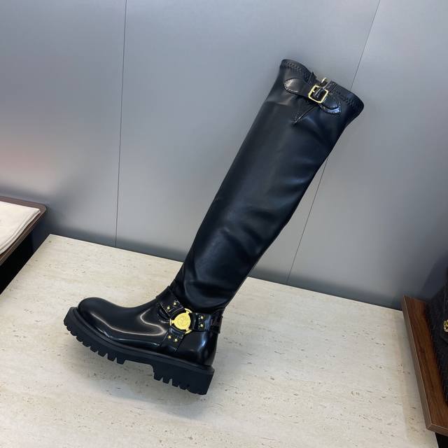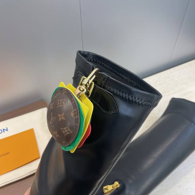 工厂P价P 不配包 Louis Vuitton*X Timberland联名合作2025秋冬新款游牧风格机车弹力过膝女长靴 Lv字母Logo五金扣汉堡包装饰厚底拼色侧拉链骑士高筒靴 材质:鞋面进口丝绸牛皮 开边珠牛皮拼接环保透气弹力Pu+水染羊皮内里+原版开模大底 Size:女码35-41 40.41定制不退换