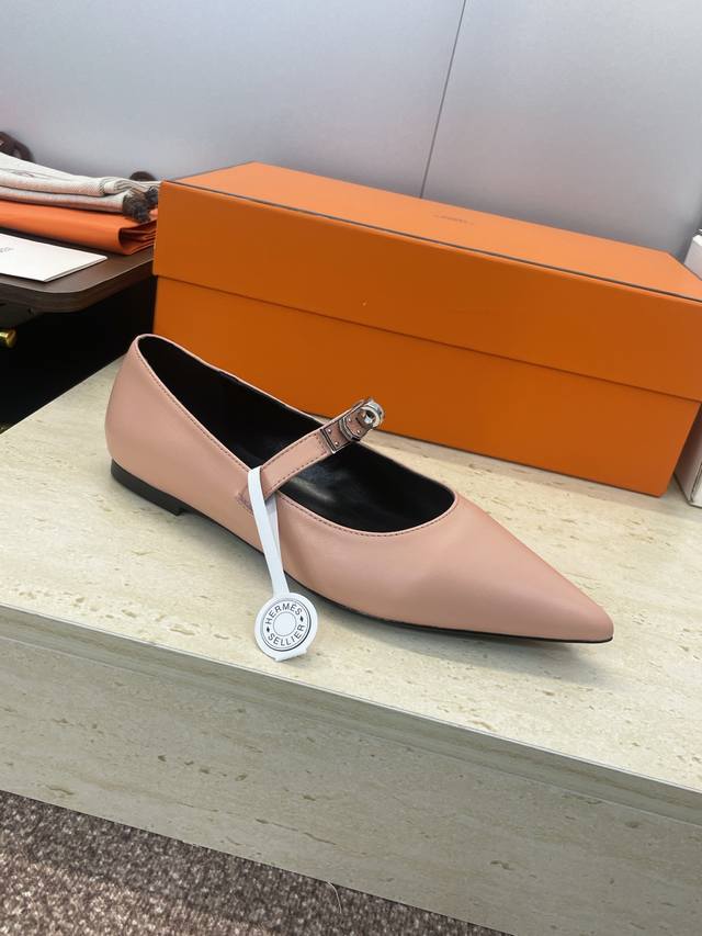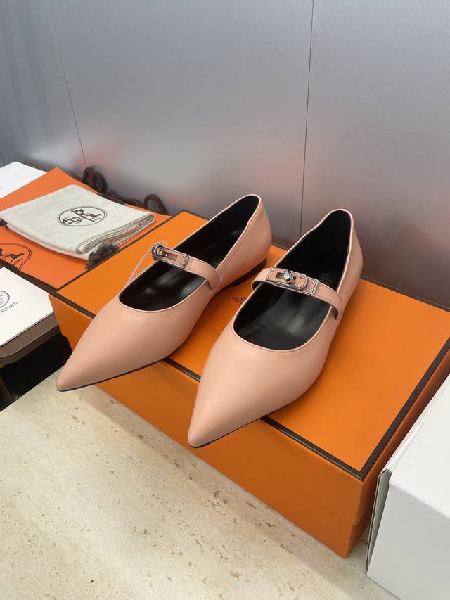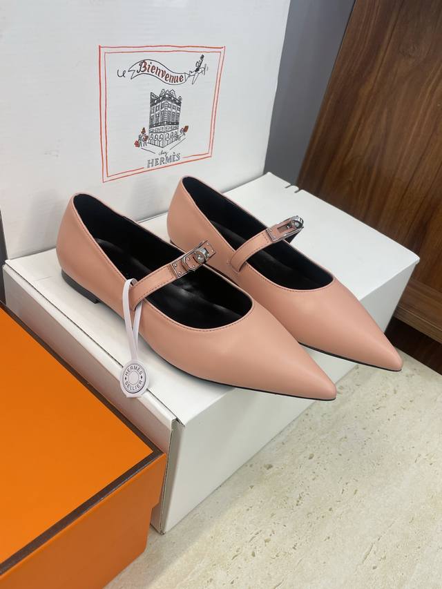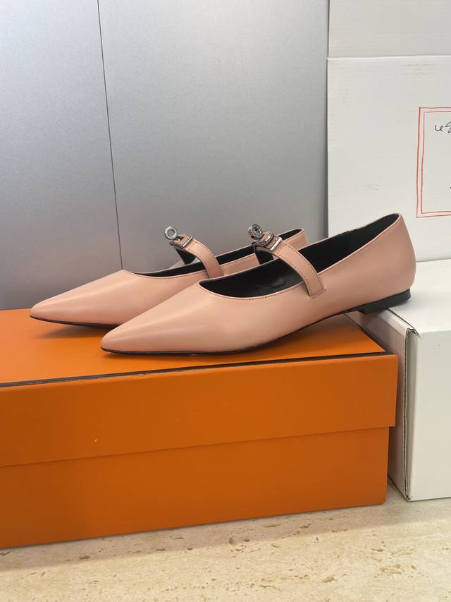 工厂P价P 莞货 代购级 爱马仕 Hermes 2025秋冬新款 Lover 拼色女鞋 H家经典Kelly五金皮带平底尖头气质单鞋 材质:鞋面进口小牛皮 +水染羊皮水里+意大利真皮大底 Size: 34-43 34.40.41.42.43定制不退换