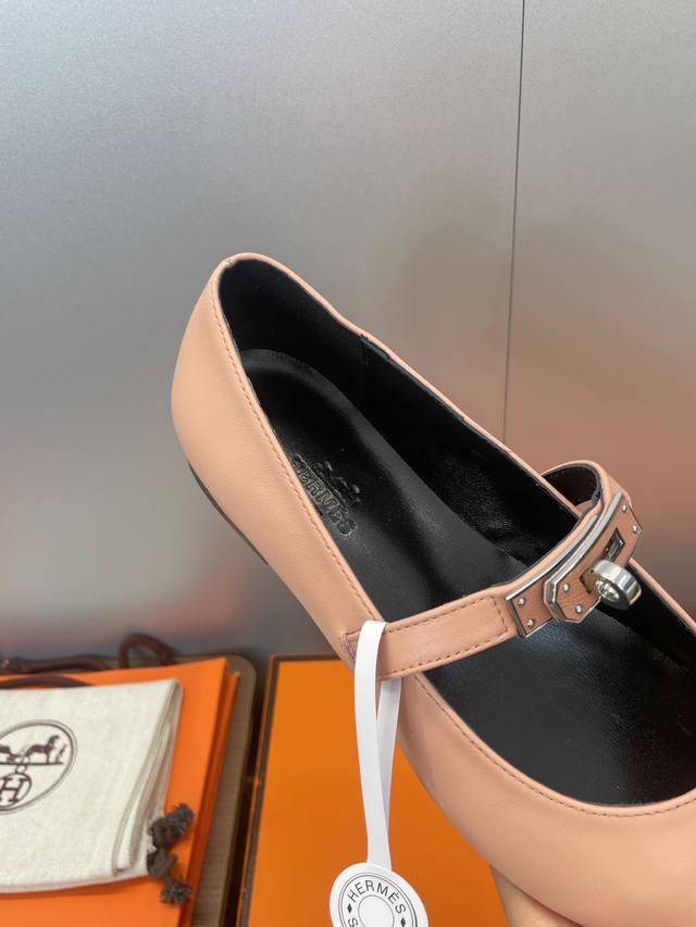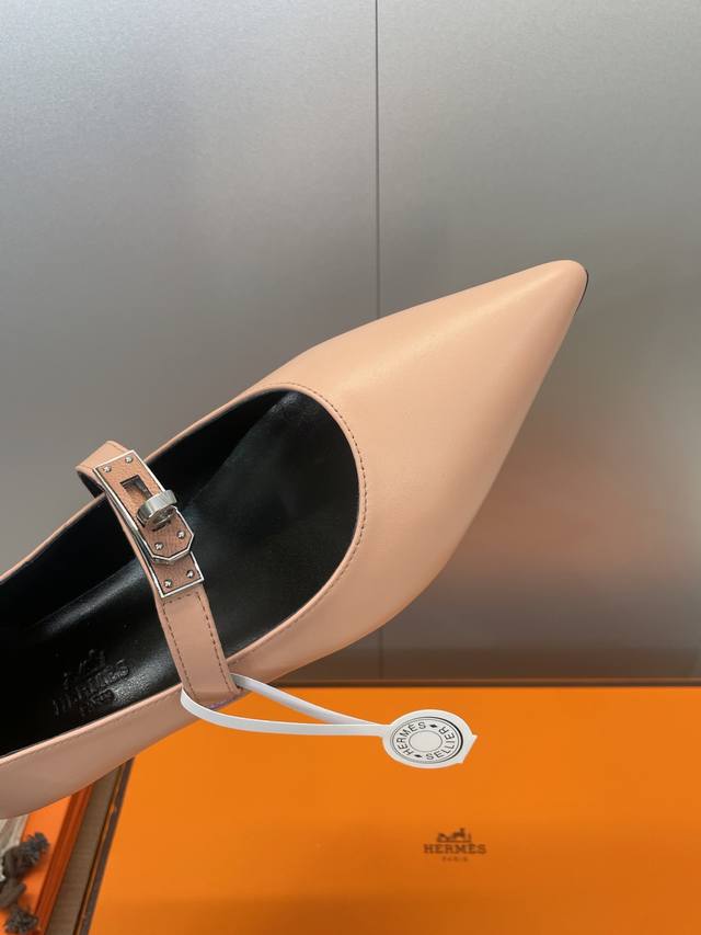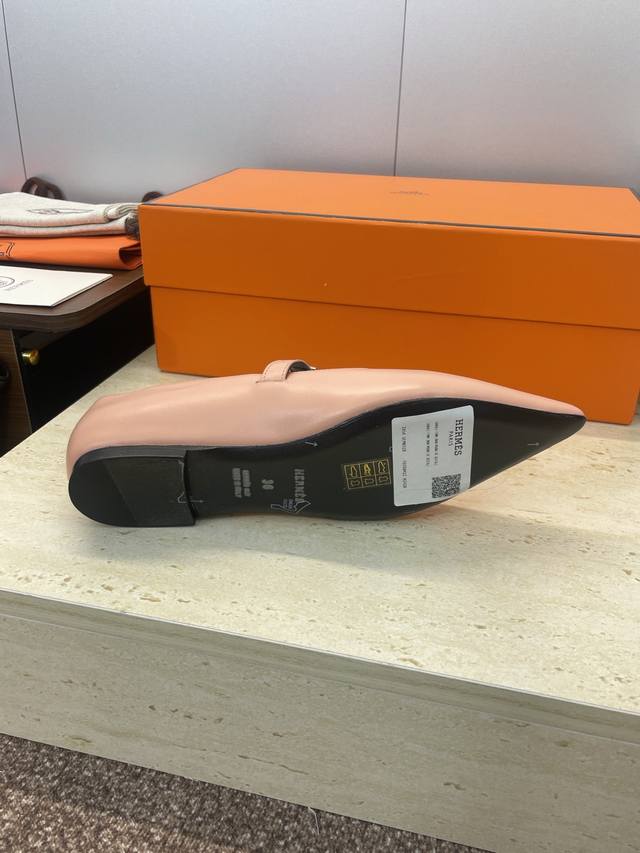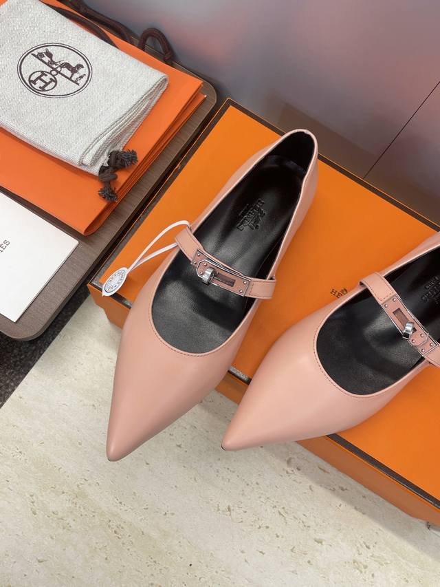 / 工厂P价P 莞货 代购级 爱马仕 Hermes 2025秋冬新款 Lover 拼色女鞋 H家经典Kelly五金皮带平底尖头气质单鞋 材质:鞋面进口小牛皮 +水染