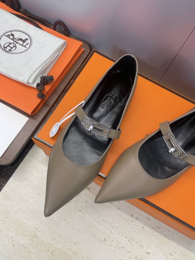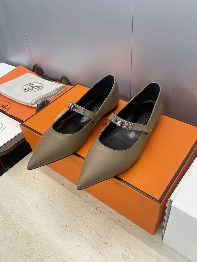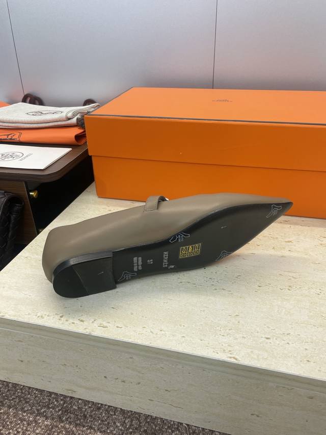 / 工厂P价P 莞货 代购级 爱马仕 Hermes 2025秋冬新款 Lover 拼色女鞋 H家经典Kelly五金皮带平底尖头气质单鞋 材质:鞋面进口小牛皮 +水染