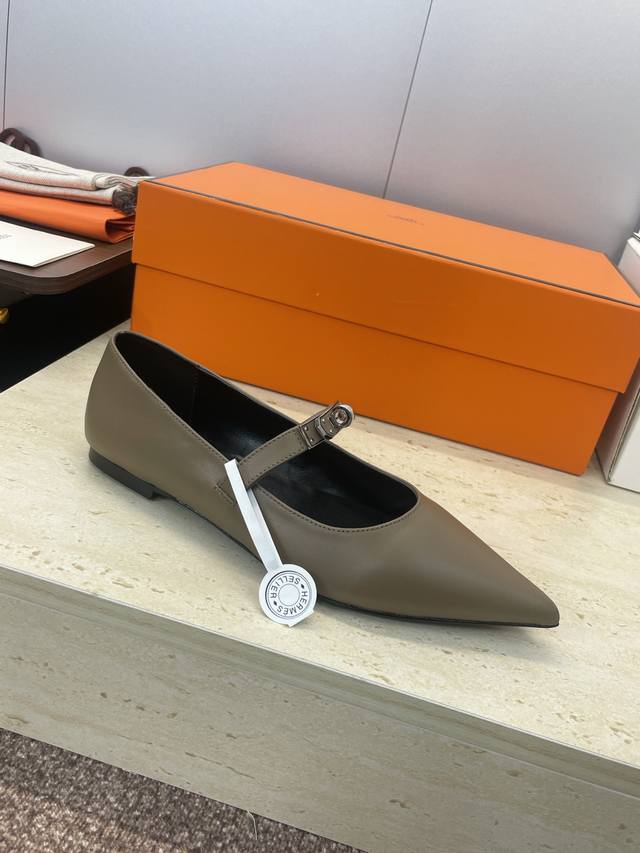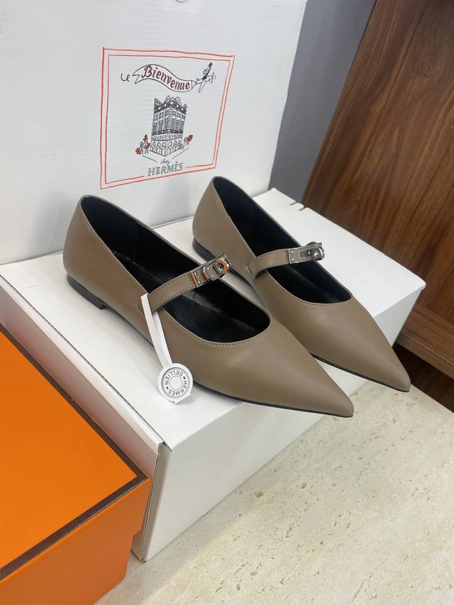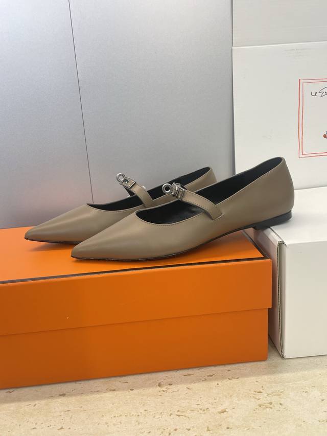 工厂P价P 莞货 代购级 爱马仕 Hermes 2025秋冬新款 Lover 拼色女鞋 H家经典Kelly五金皮带平底尖头气质单鞋 材质:鞋面进口小牛皮 +水染羊皮水里+意大利真皮大底 Size: 34-43 34.40.41.42.43定制不退换